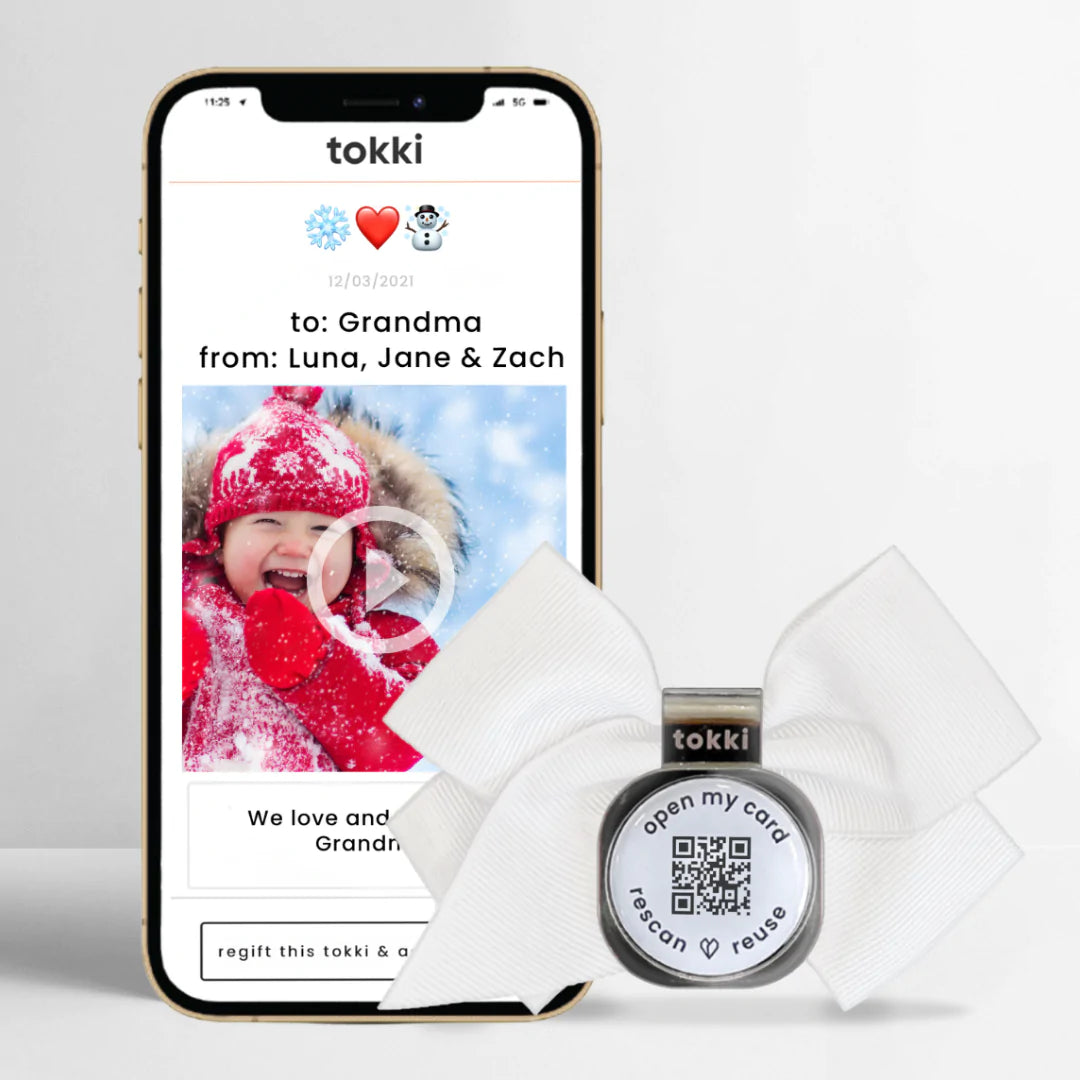 white | qr card + bow