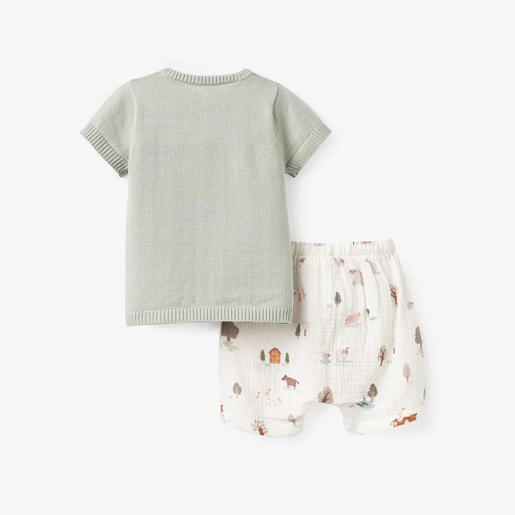 ON THE FARM KNIT HENLEY + ORGANIC MUSLIN SHORT SET