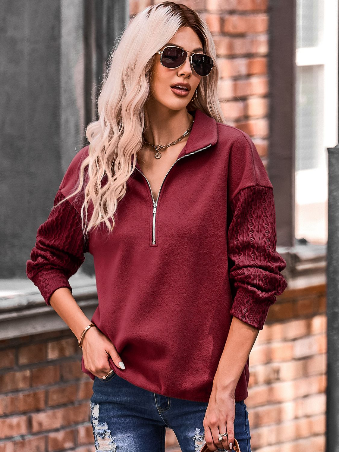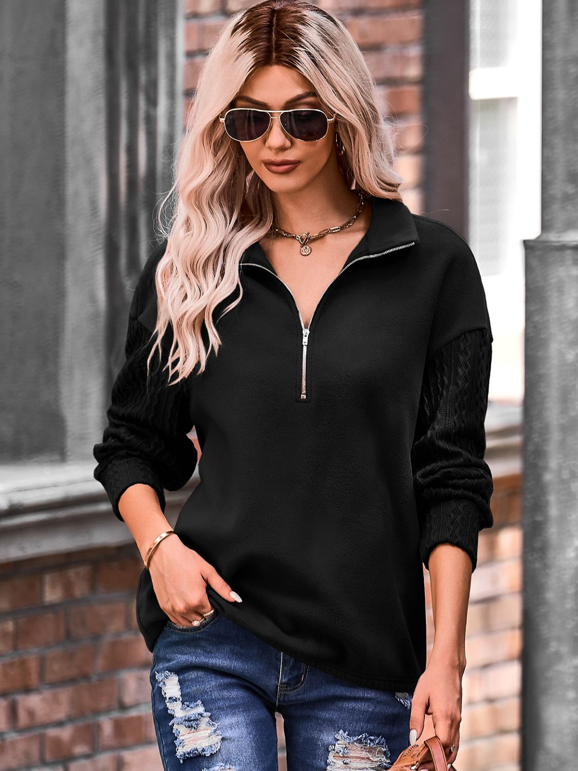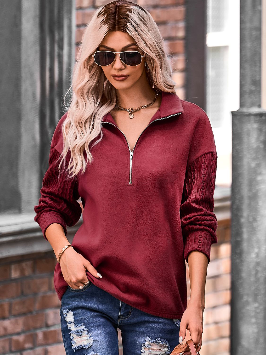 Quarter Zip Dropped Shoulder Spliced Sweatshirt-Online Exclusive