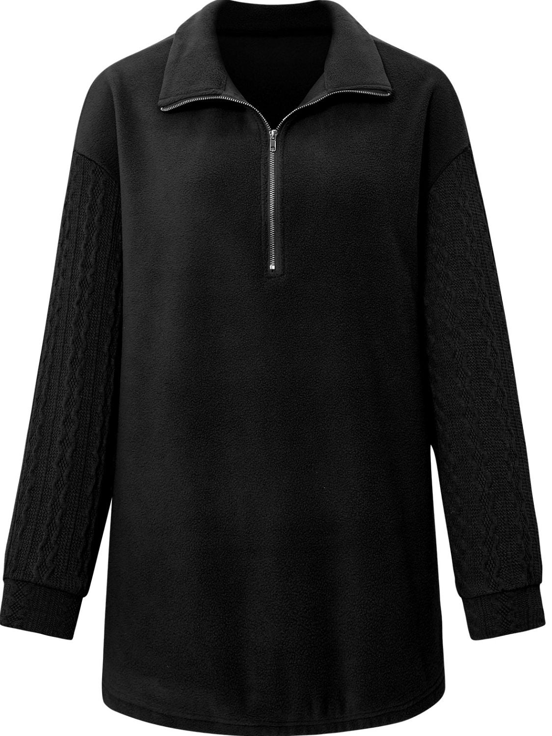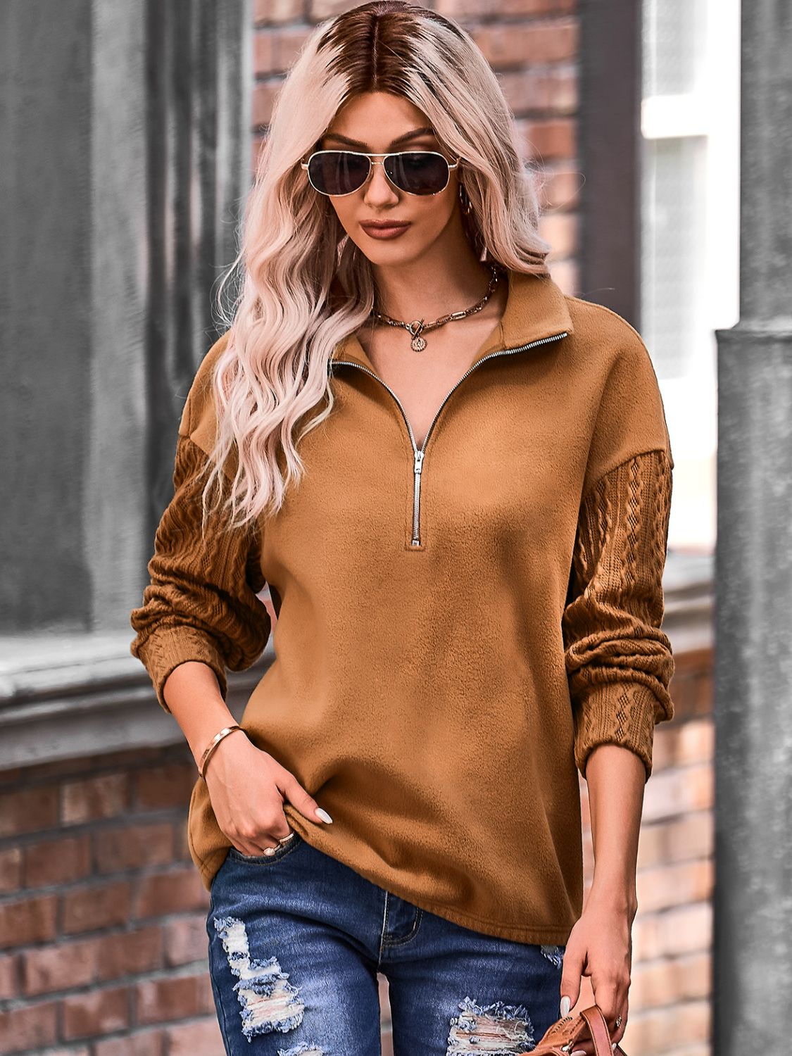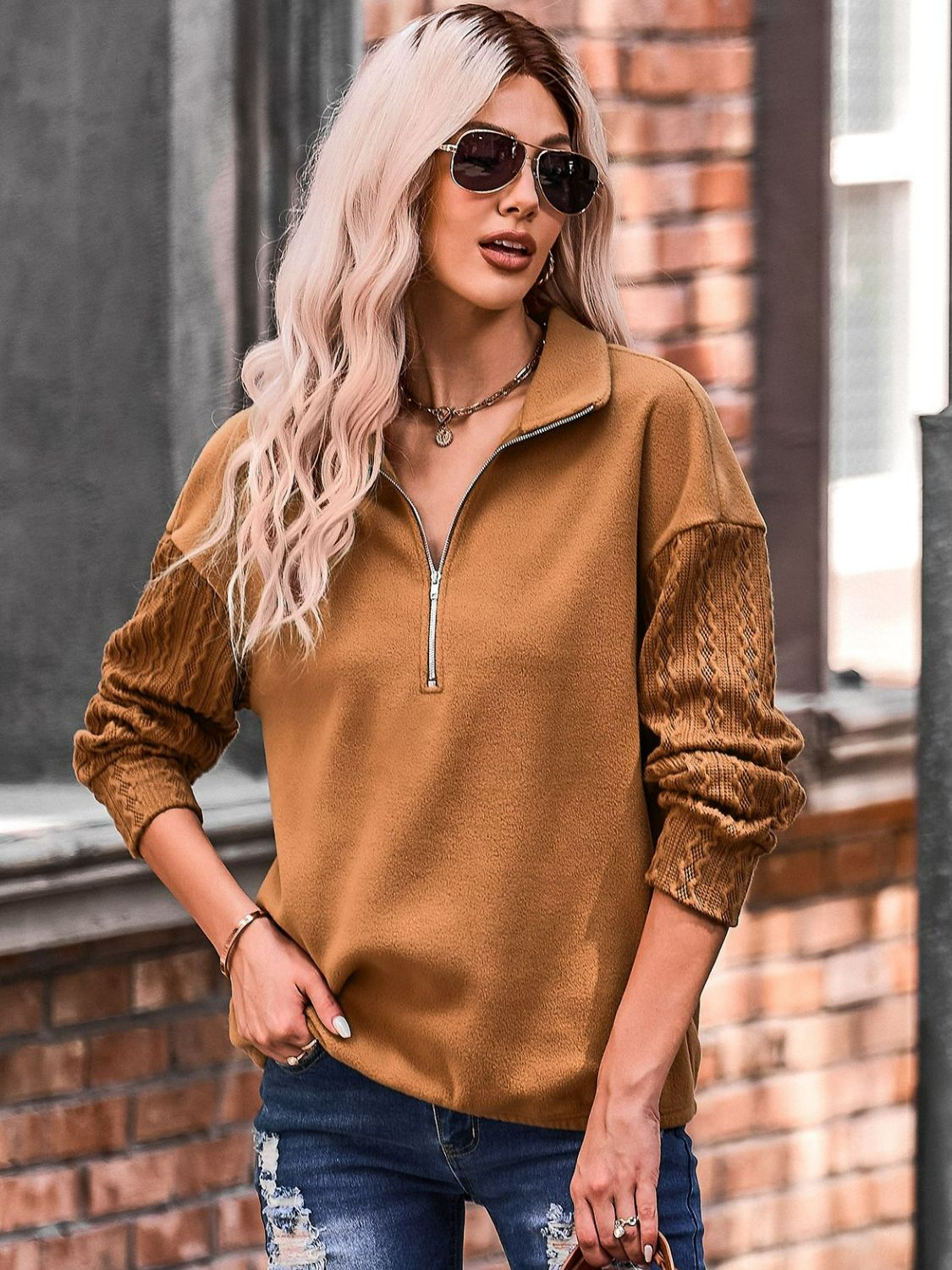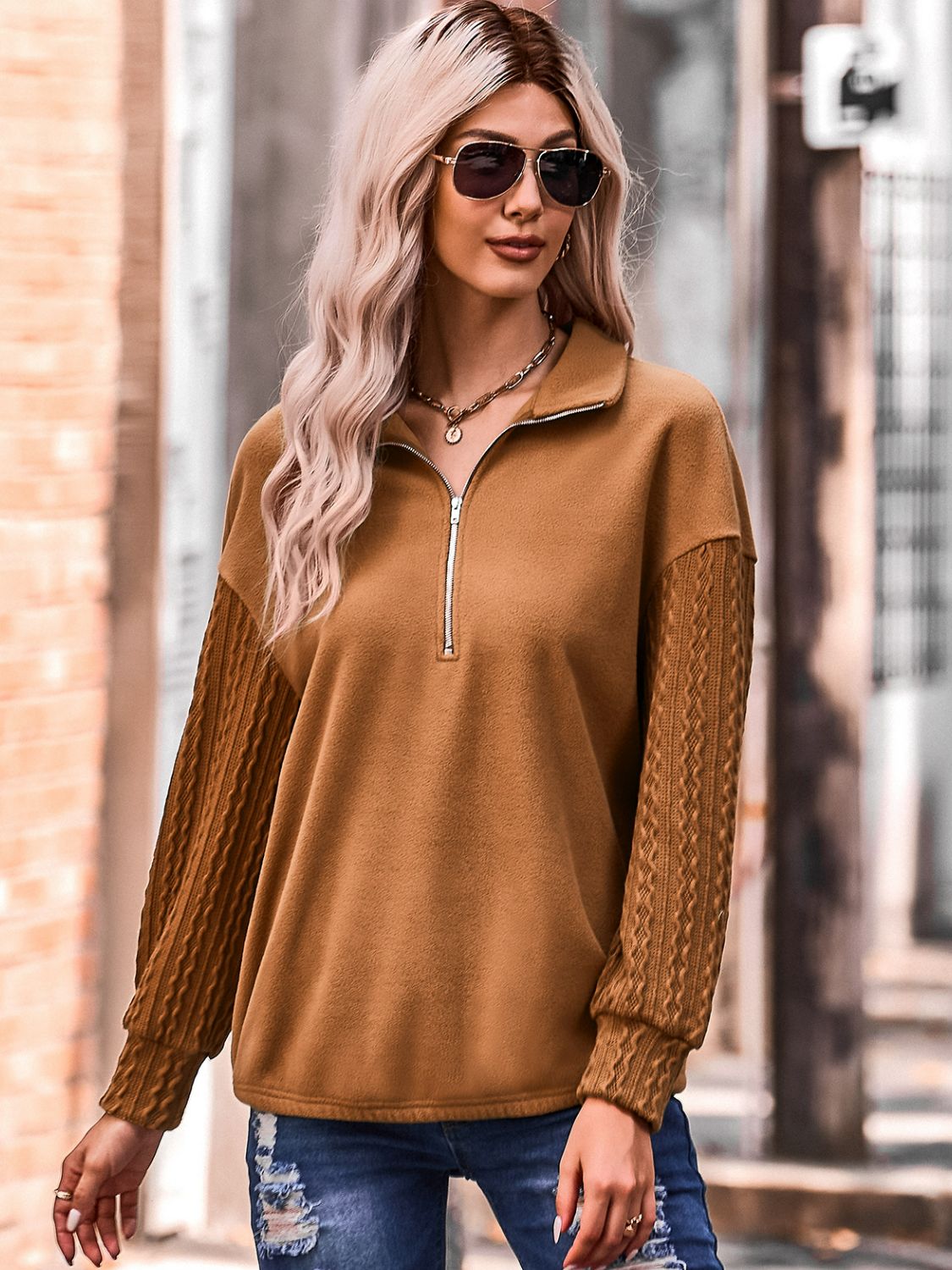 Quarter Zip Dropped Shoulder Spliced Sweatshirt-Online Exclusive