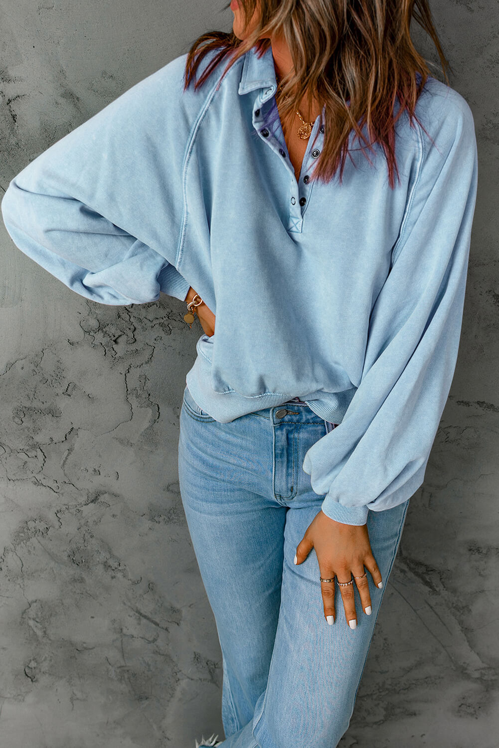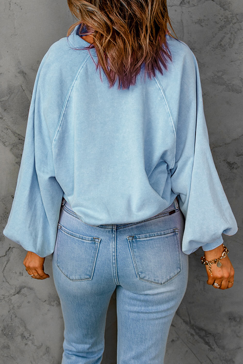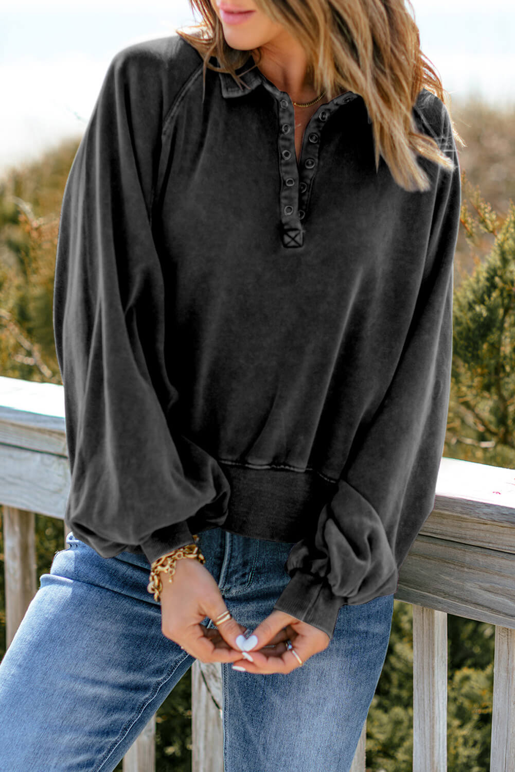 Quarter-Snap Collared Lantern Sleeve Sweatshirt-Online Exclusive