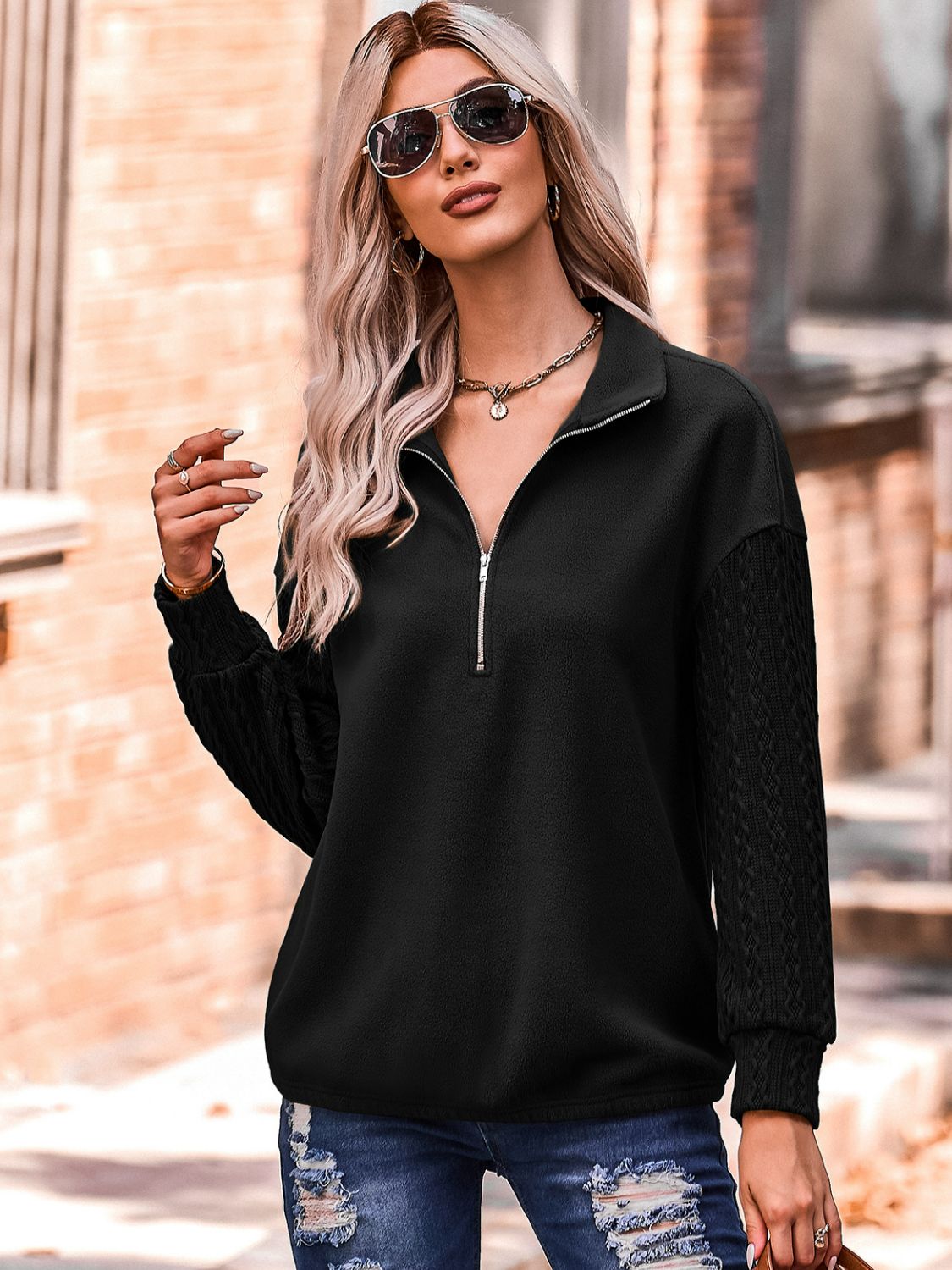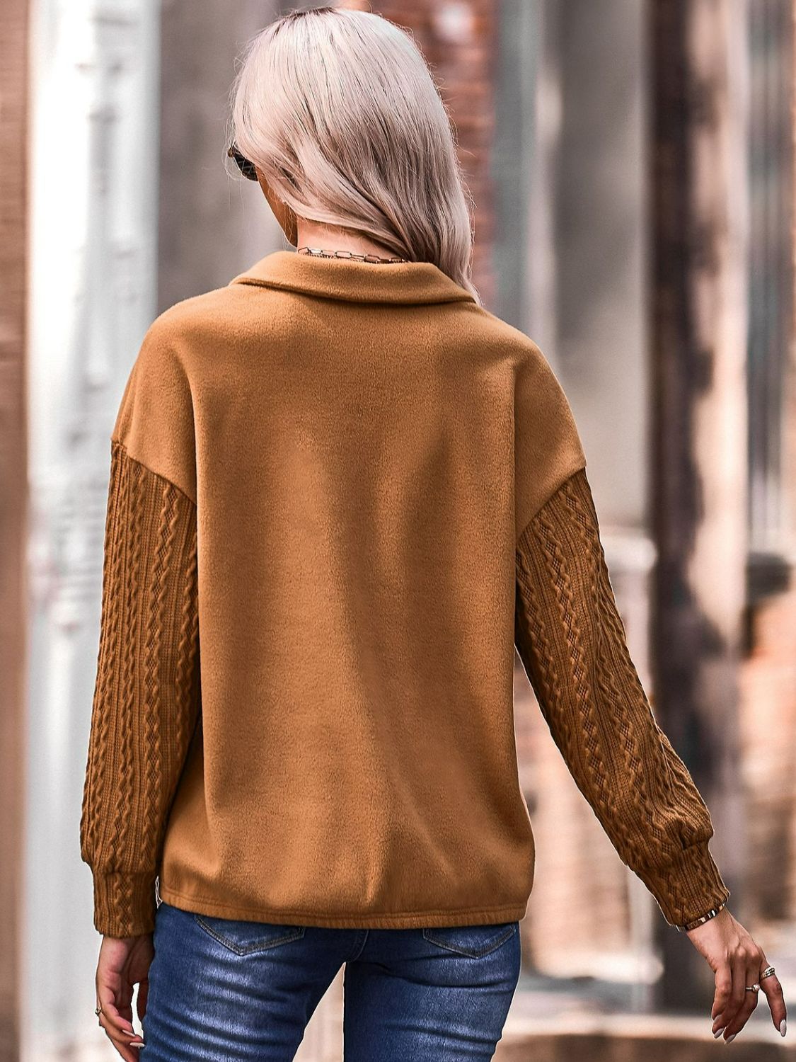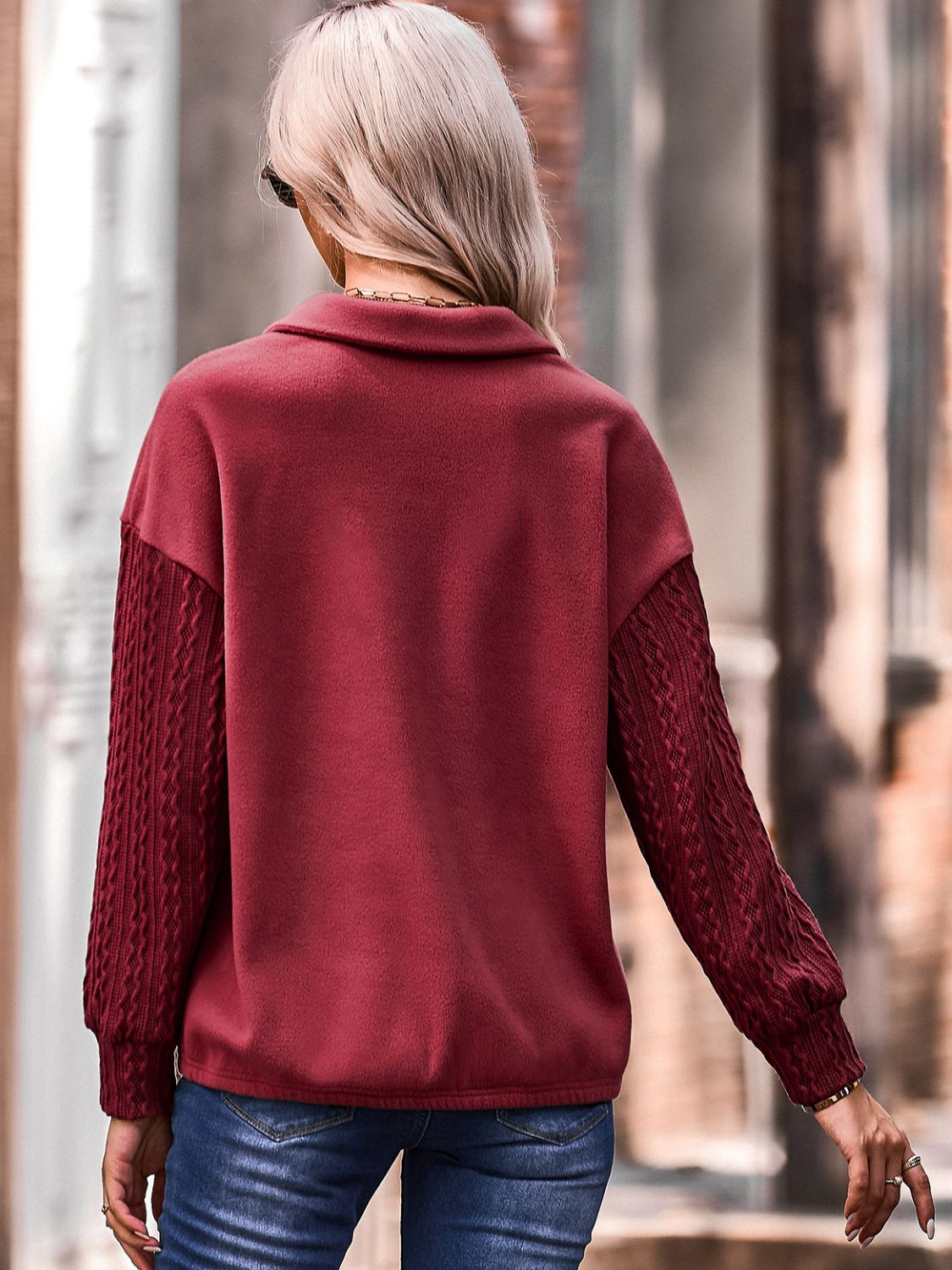 Quarter-Snap Collared Lantern Sleeve Sweatshirt-Online Exclusive