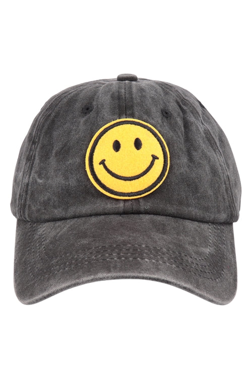 SMILEY LOGO ACID WASHED TEXTURED FASHION FASHION CAP-BLACK