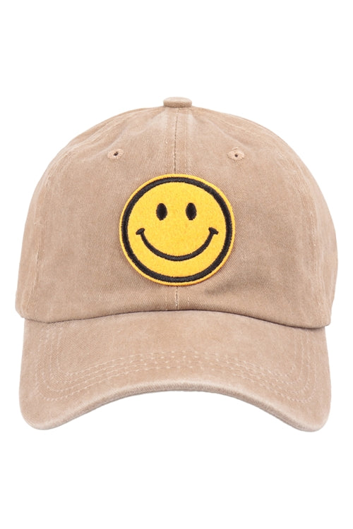 SMILEY LOGO ACID WASHED TEXTURED FASHION FASHION CAP-KHAKI