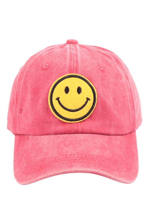 SMILEY LOGO ACID WASHED TEXTURED FASHION FASHION CAP-RED