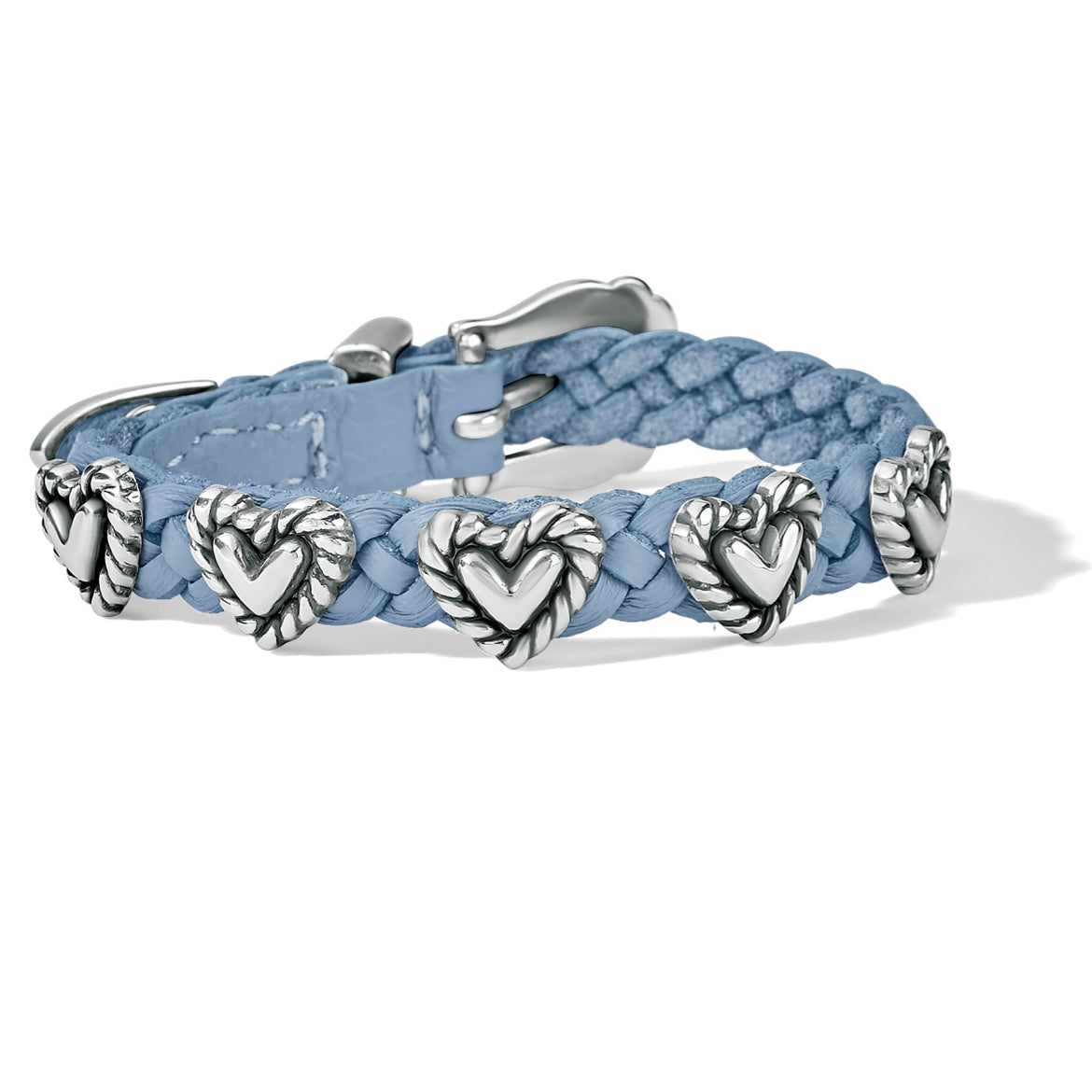 Boho chic and casual design at its best - hearts inside a "roped" frame surround a span of hand braided leather.