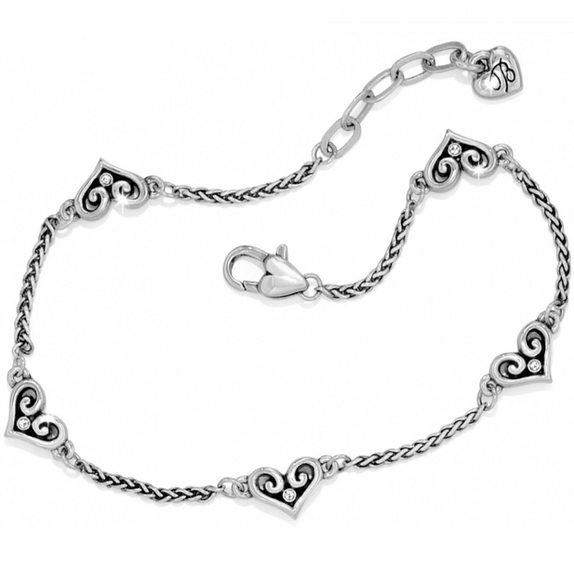 Inspired by the Alcazar, this silver-plated anklet features five petite Alcazar hearts, each with a crystal embellished center. For sunny, Spanish-like days, wear this ankle bracelet with shorts or dresses!
