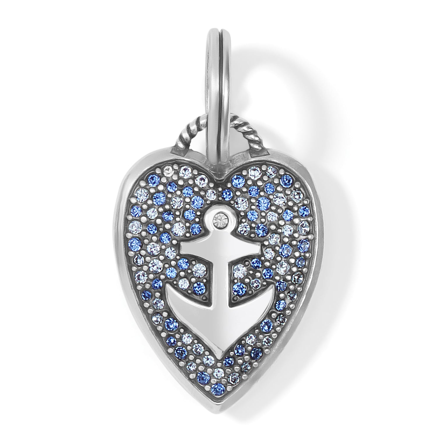 A heart with blue crystals and anchor adds a charming nautical touch to your carrier. It is inscribed on the back with “Let love be your anchor & hope be your sail.”