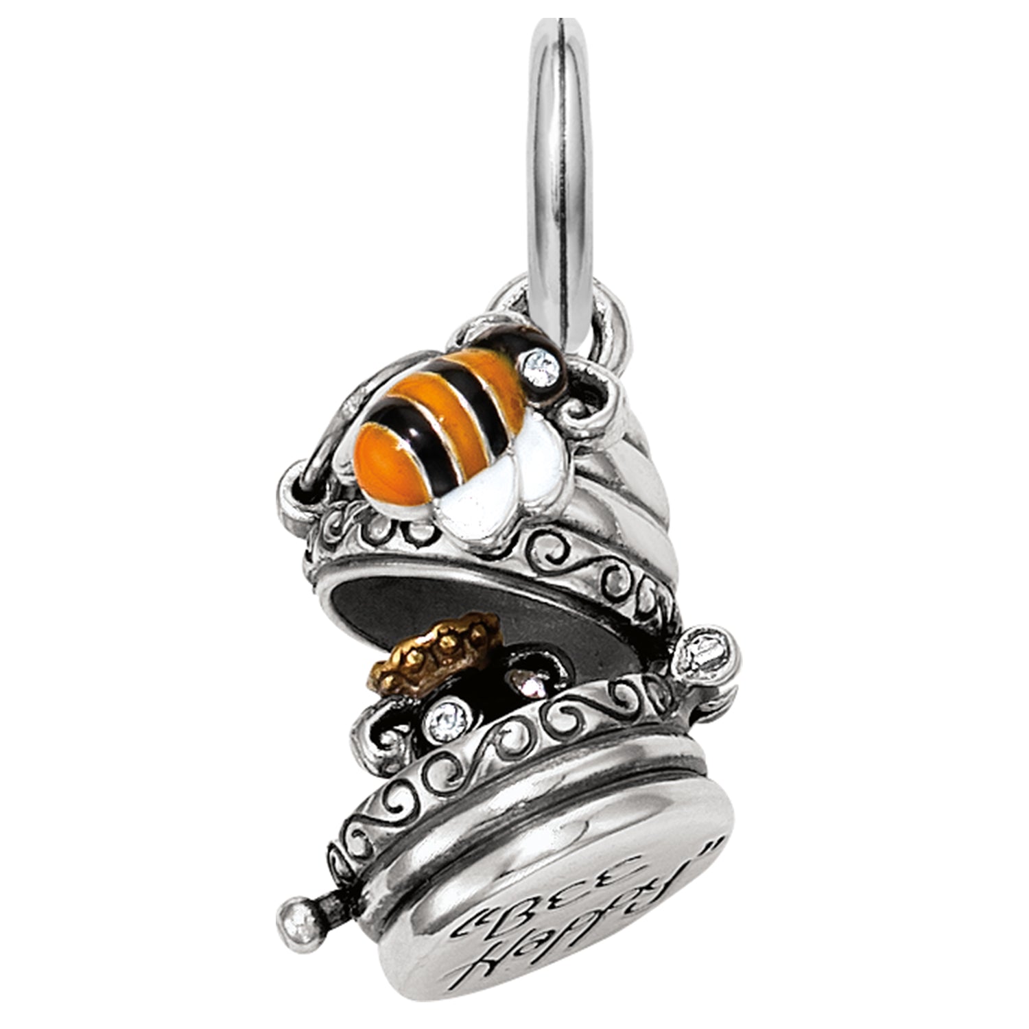 Open up this wee hive to reveal the Queen Bee! On the bottom of this charm, it reads, Bee Happy!