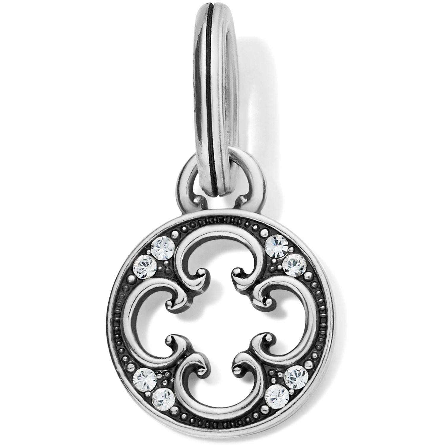 A clover-shaped quatrefoil, embellished with fine quality crystals on one side and hand enameling on the other, becomes representative of luck and love.