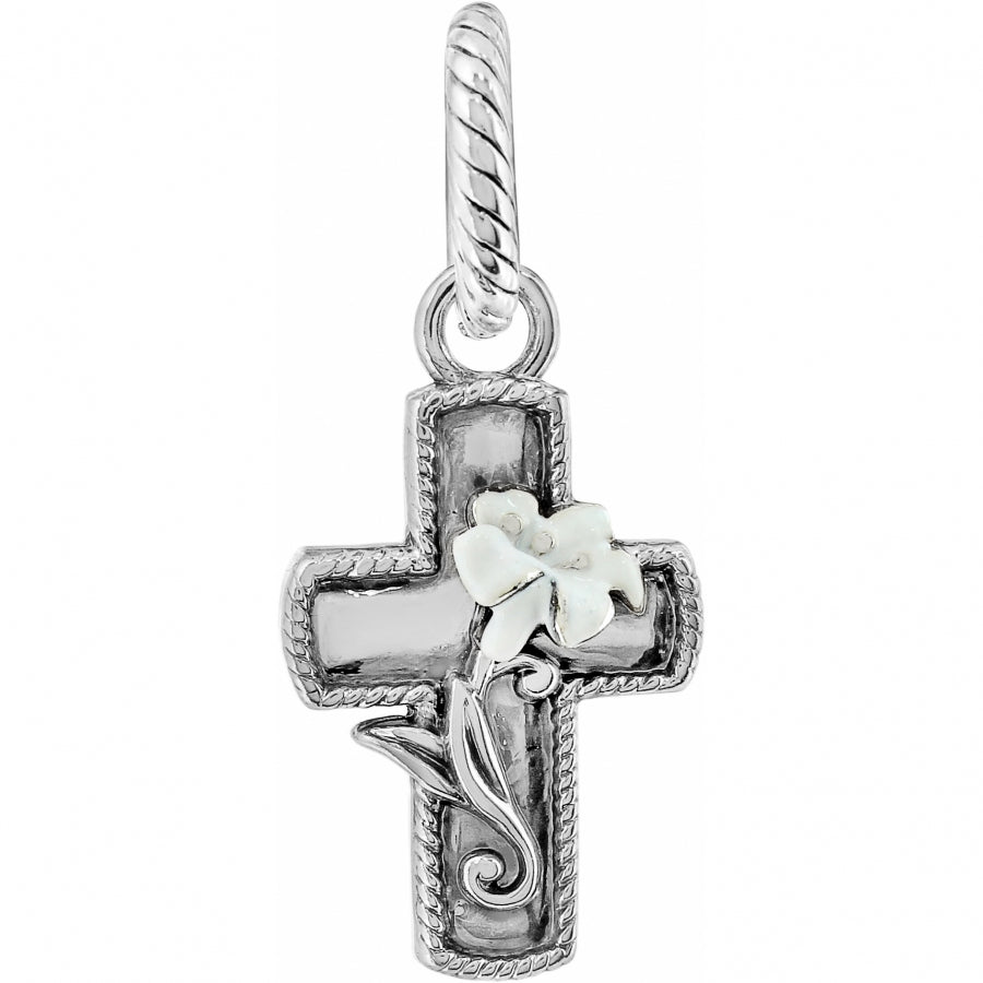 Celebrate the spirit of the season with the Easter Lily Cross charm. A cross is adorned by a white enameled lily. The back is detailed with a dense scroll.