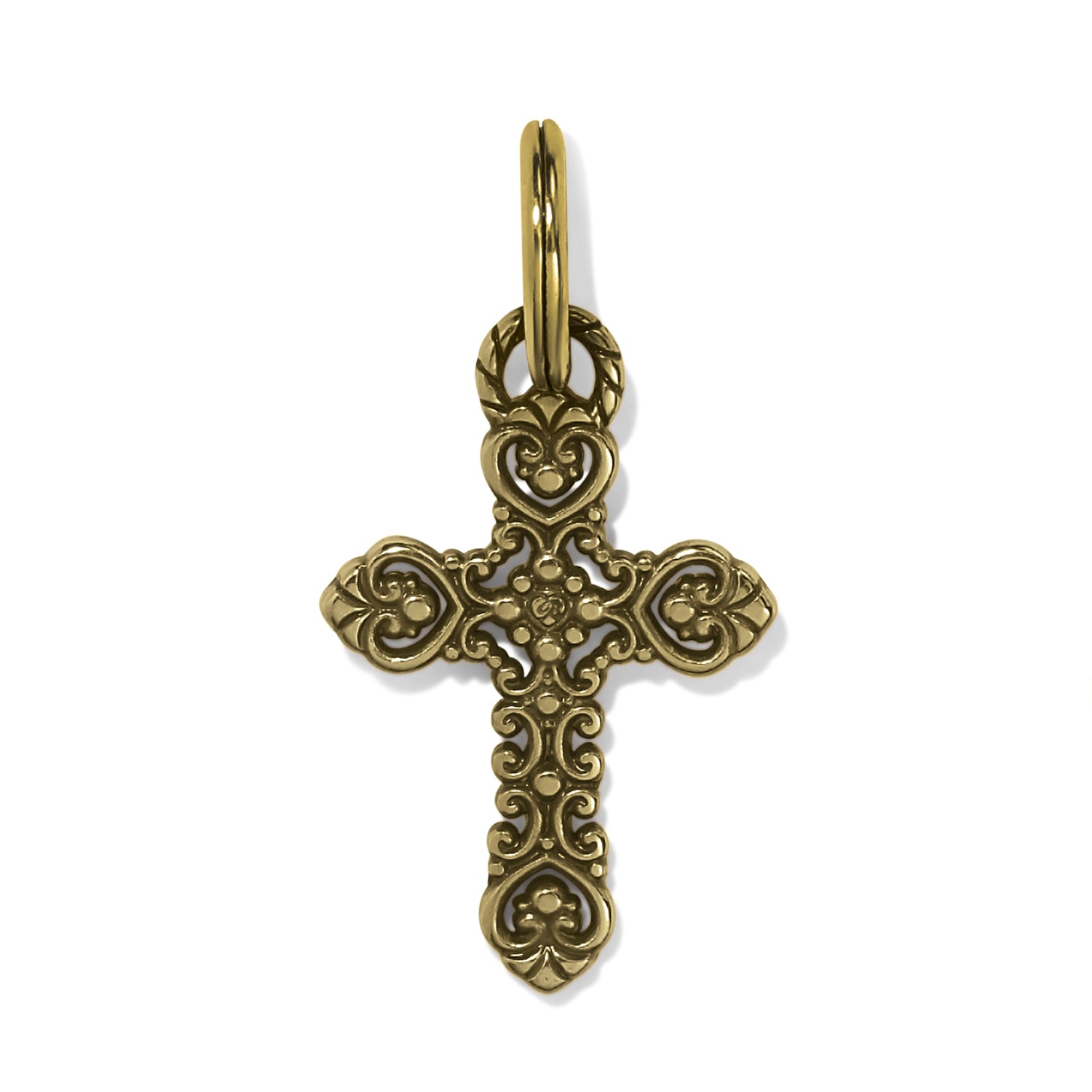 This artistic and inspiring cross amulet features intricate swirls and hand-set crystals.