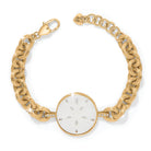 A sand dollar medallion custom-cut by artisans and framed in gold adds beauty and a beachy touch to this golden chain bracelet. The charm is also removable.