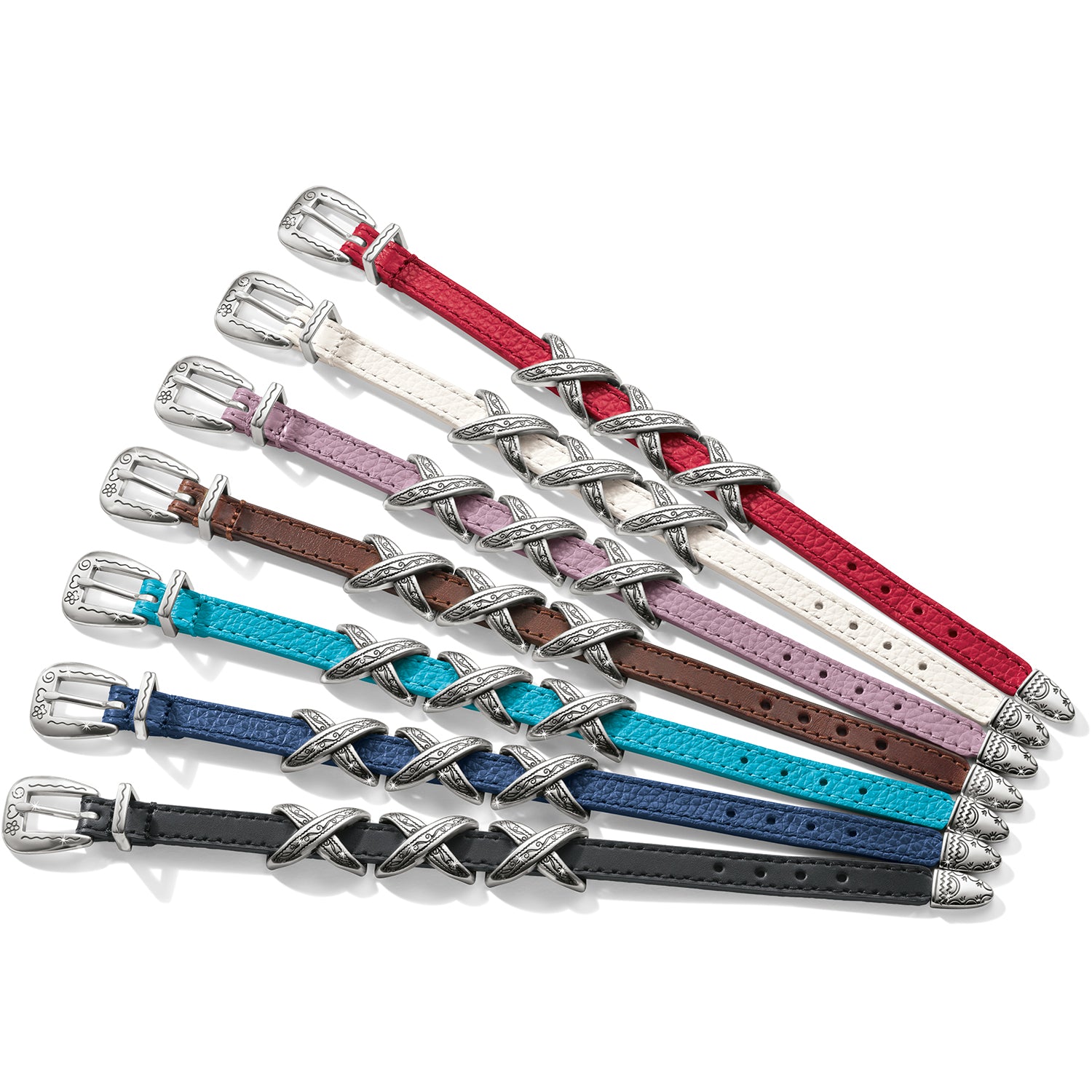 Bracelets inspired by our leather belts – like this one with crisscross silver-plated accents – are one of the very first jewelry styles we created at Brighton. Crafted of Italian leathers, they are handcrafted by our artisans.