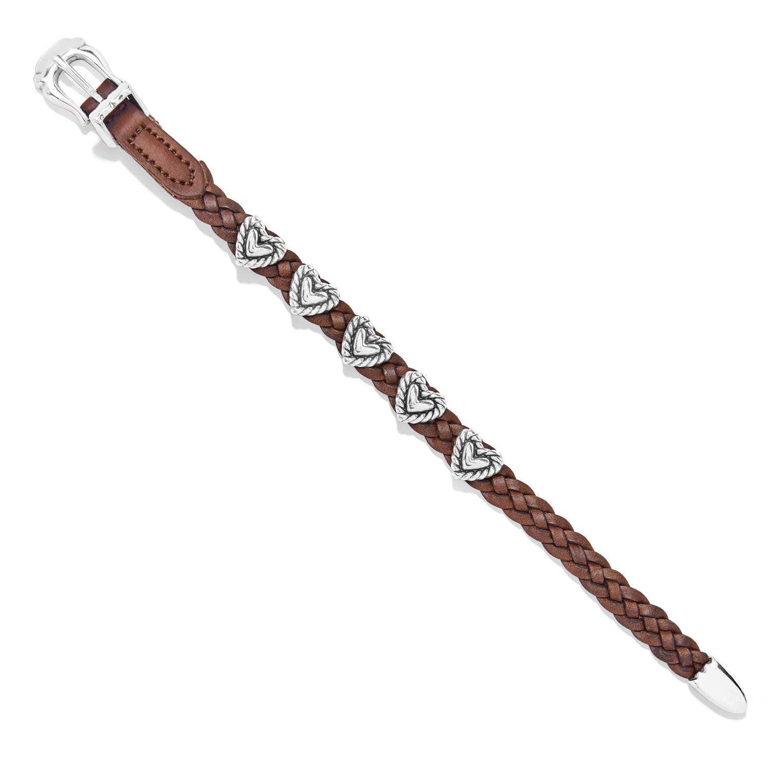 Boho chic and casual design at its best - hearts inside a "roped" frame surround a span of hand-braided leather. It combines the iconic design elements that make every Brighton accessory a wearable work of art. Whether you pair it with your favorite denim or a dress, it will garner compliments.