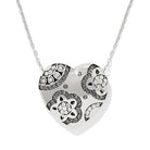 Mid-century floral patterns were the muse for this heart pendant necklace defined by black diamond-hued accents.
