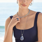 Meet the perfect companion to everything from your blue denim faves to your best-loved dresses – this necklace designed by Maryam Nassirbegli has deep navy blues and intriguing textures peeking through transparent enamel for a modern take on florals. It reverses to all silver.