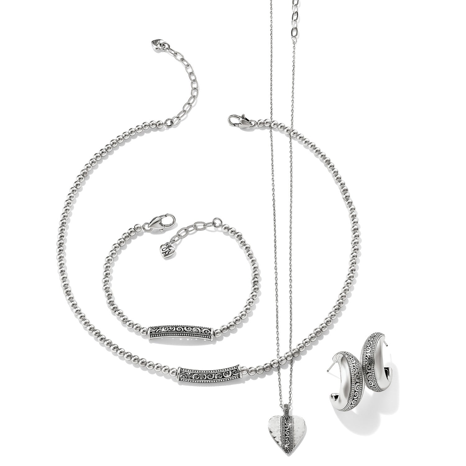 With collar necklaces being right on trend, and this one having such pretty pierced scrolls and discs on its narrow bar, this necklace is irresistible to layer or wear on its own.