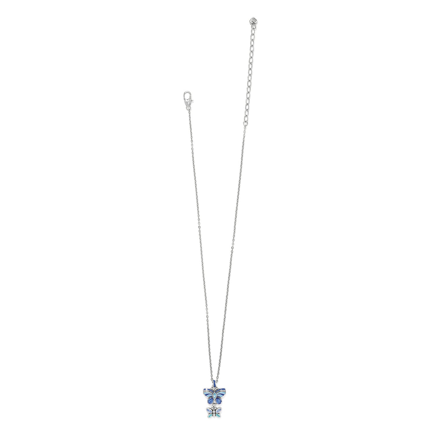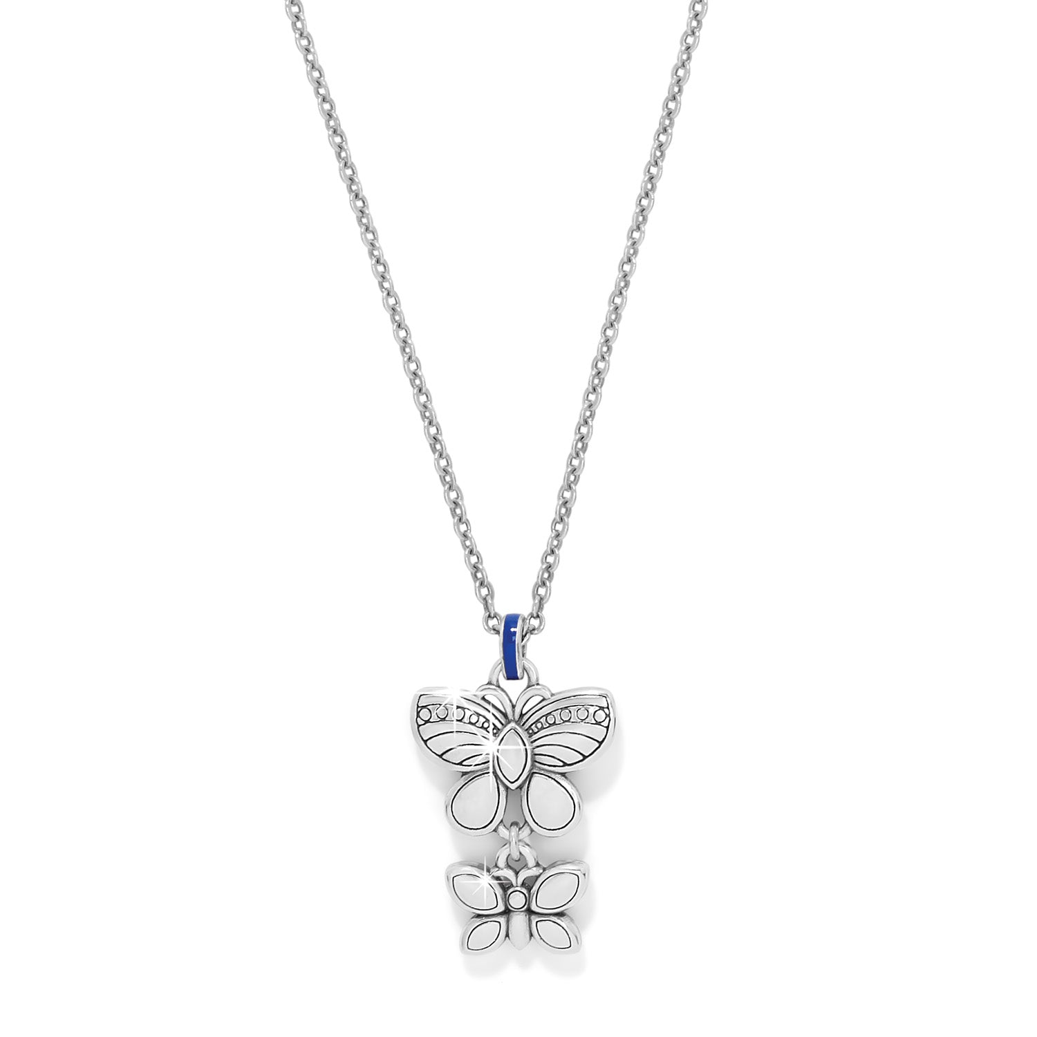 Two artisan hand-enameled butterflies with hand-set crystal accents are suspended from this delicate and feminine necklace. The inspiration came from our designer’s trip to Australia.