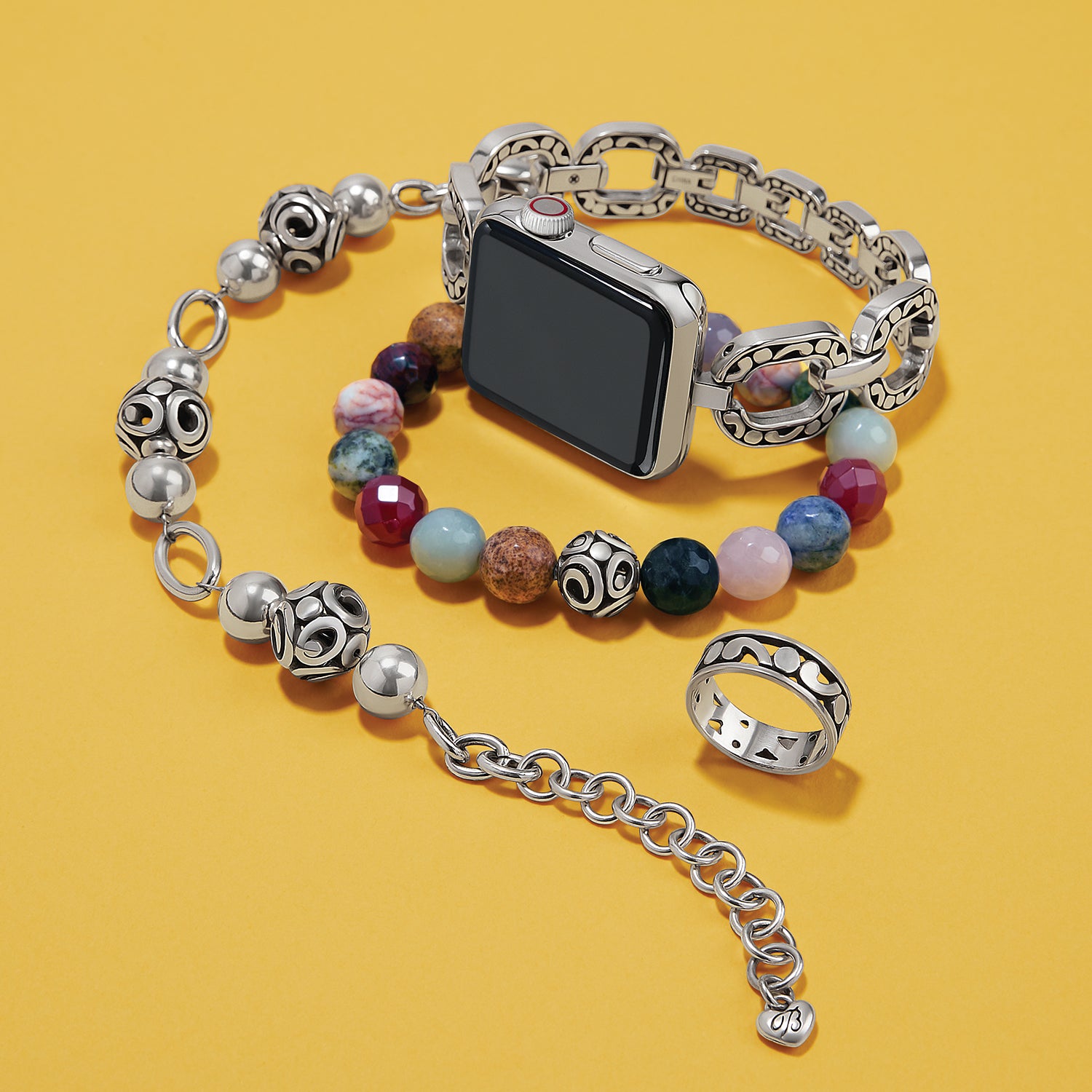 Designed to fit your Apple Watch®, our silver Contempo Linx Smart Watch Band pairs functionality with style, featuring scrollwork from our Contempo Collection. It offers three fold-over clasp extenders for adjustability, and fits 38 mm case size and larger.