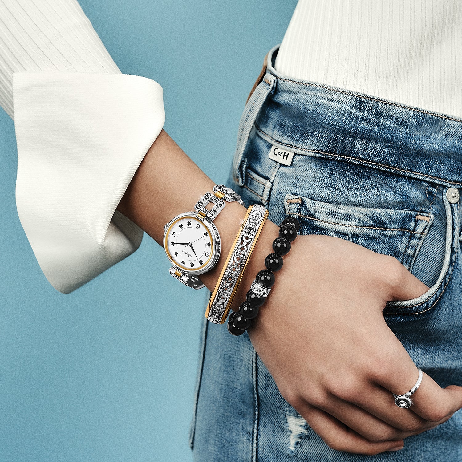 A great neutral watch for daily wear, this one features two-tone finish with etched scrolls matching the Venezia collection and its original inspiration of Venetian architecture. The square link chain has a modern feel.