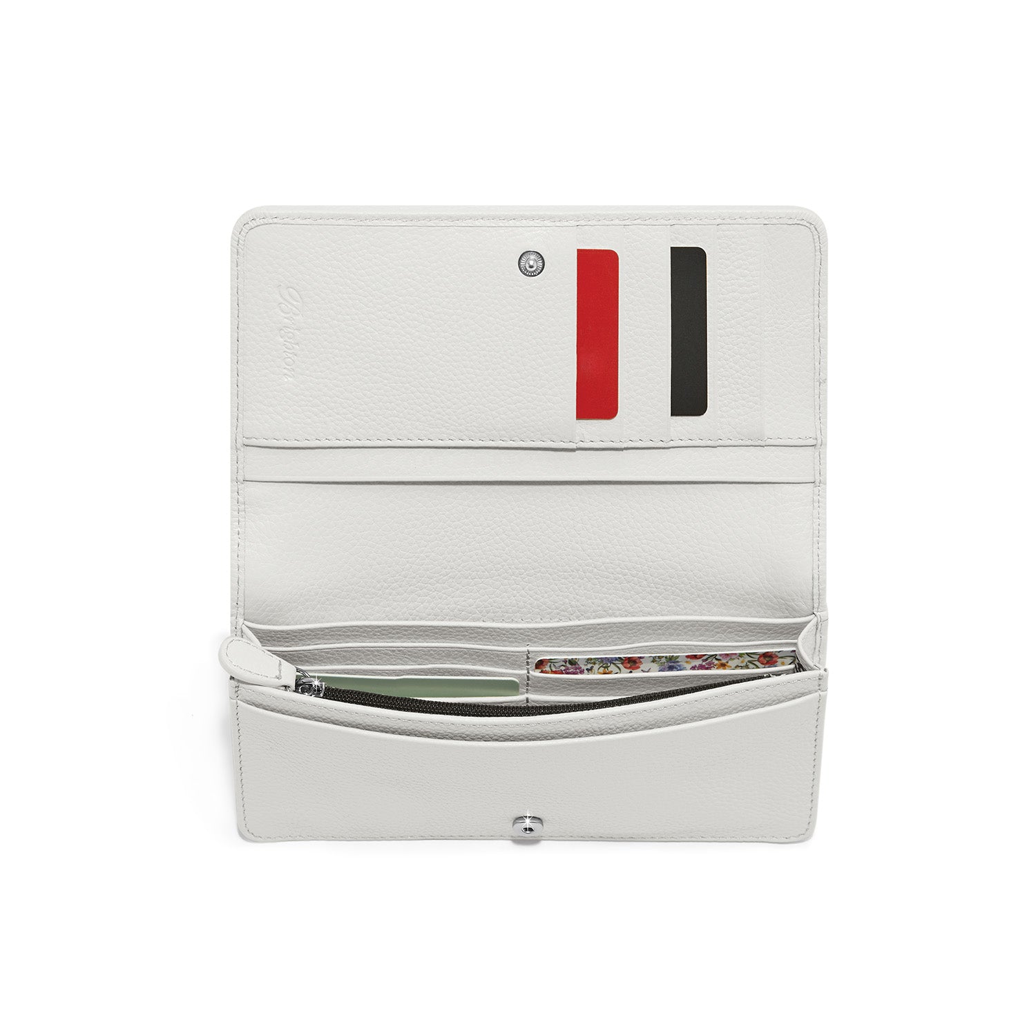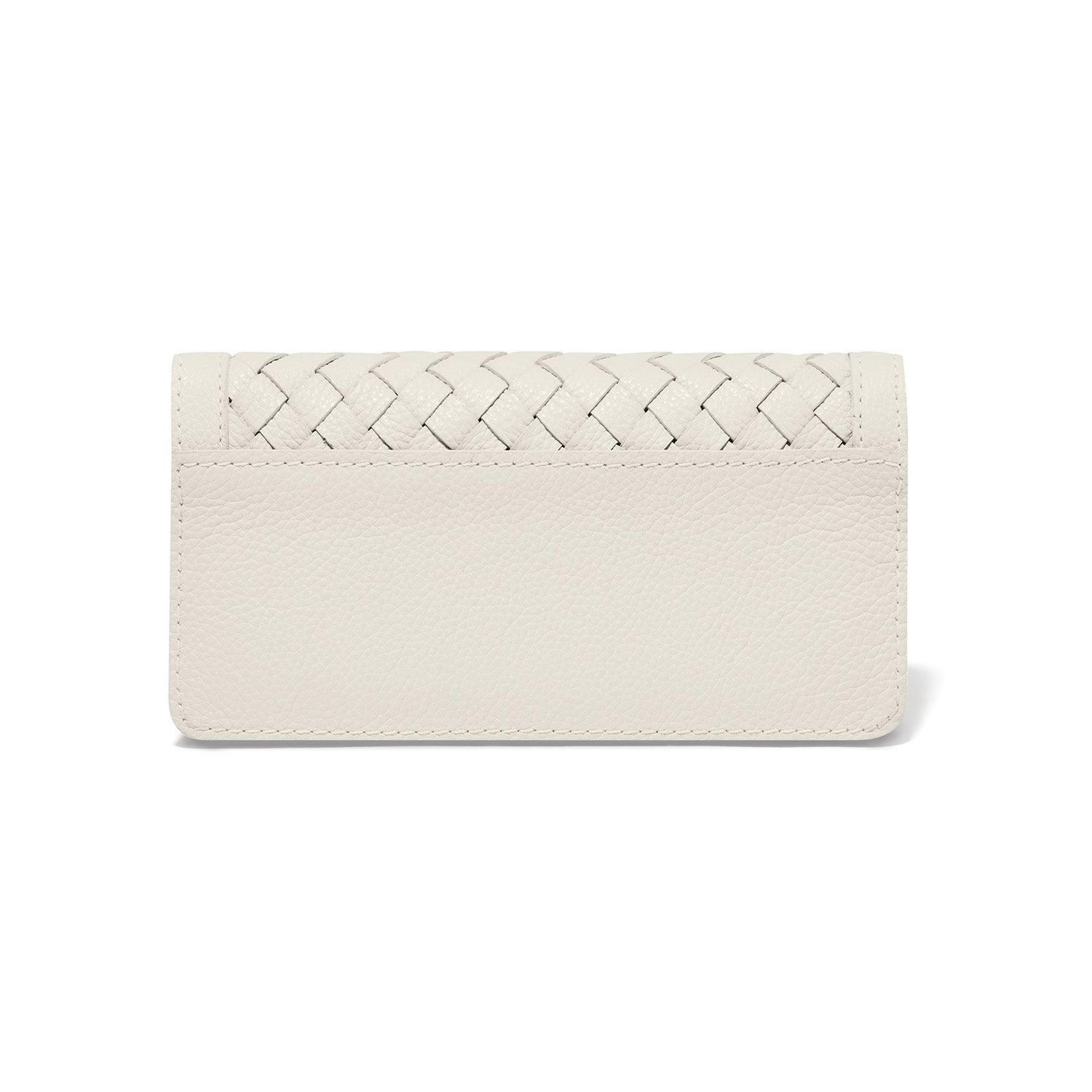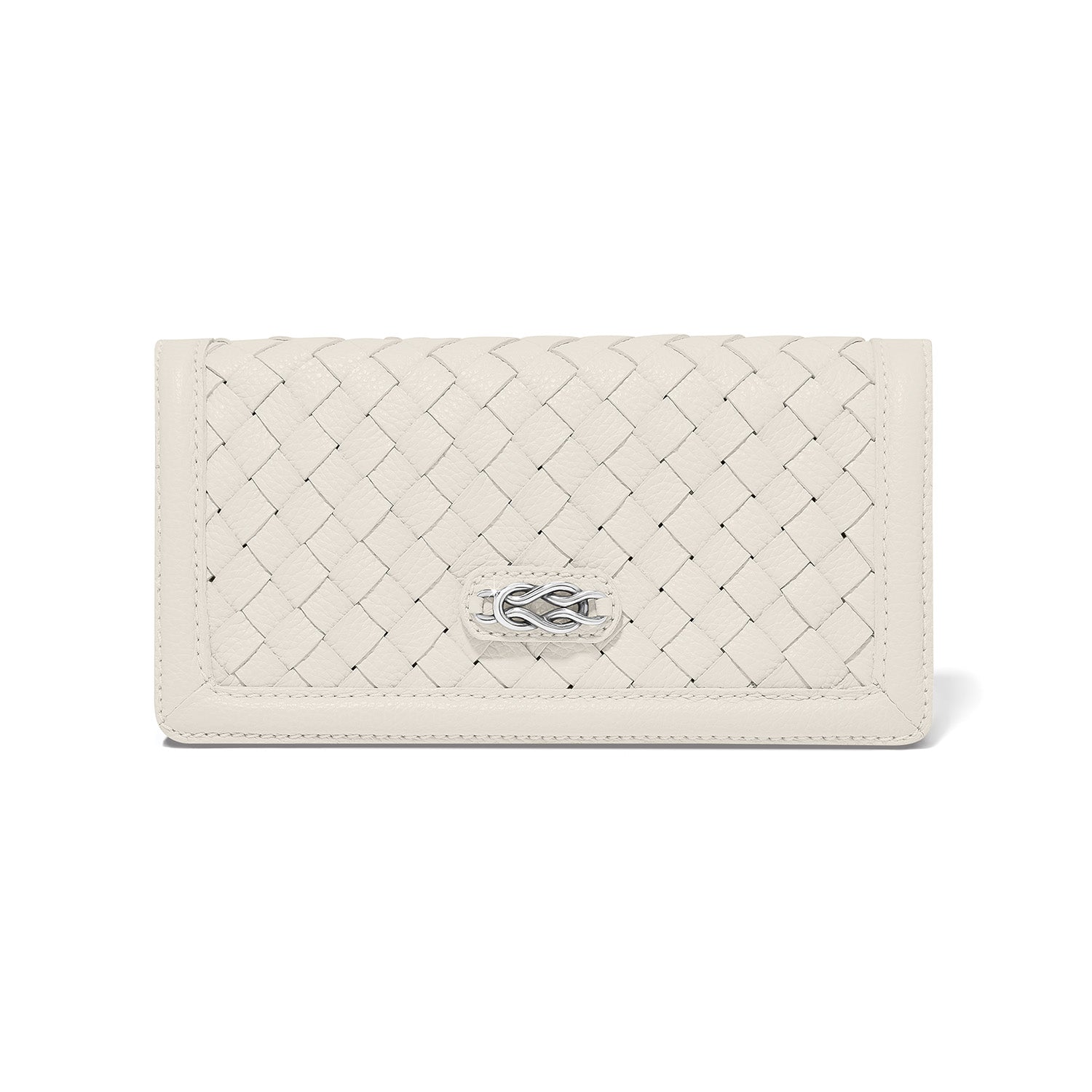The graphic herringbone design decorates this wallet that is accented with refined silver Interlok hardware. Each piece is perfectly engineered.