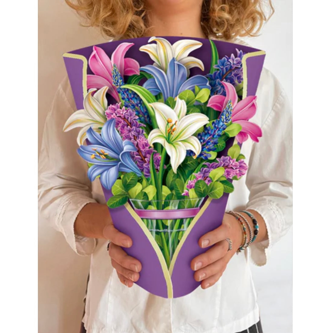 Lilies & Lupines are the latest blooms from FreshCut Paper. Majestic Lilies, have long been a symbol of rebirth, are combined with stately Lupines, celebrating the optimism that leads to the discovery of new opportunities, to create a stunning mixed bouquet. A thoughtful gift that bestows warm wishes and encouragement for the future - sentiments that are as enduring as the bouquet itself.