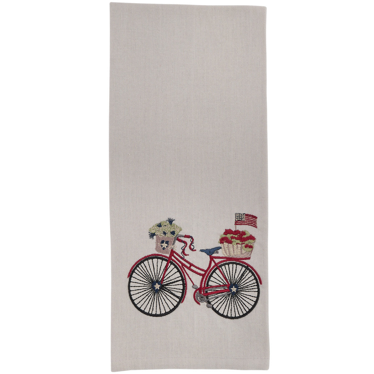 Ride into the kitchen with this bike-inspired dishtowel, featuring a patriotic flag design! Perfect for adding a touch of fun to your daily chores.