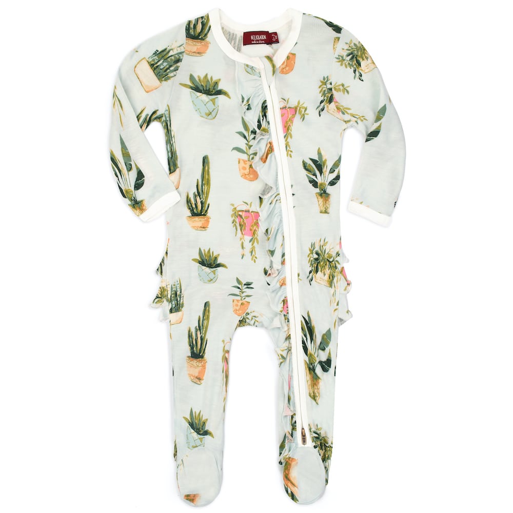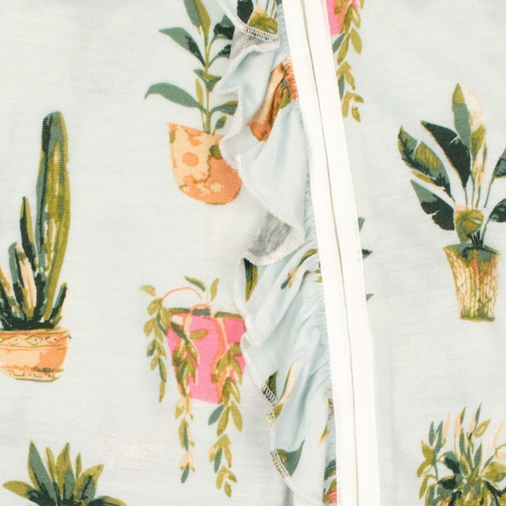 Potted Plants Bamboo Ruffle Zipper Footed Romper