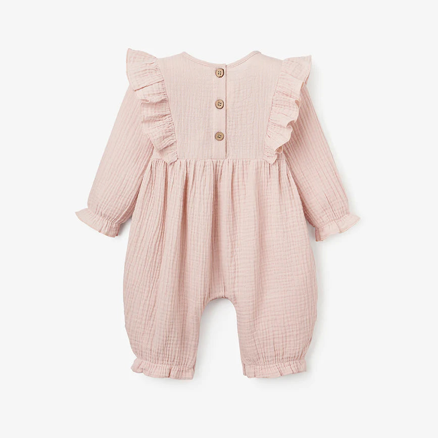 WARM BLUSH ORGANIC MUSLIN BABY JUMPSUIT