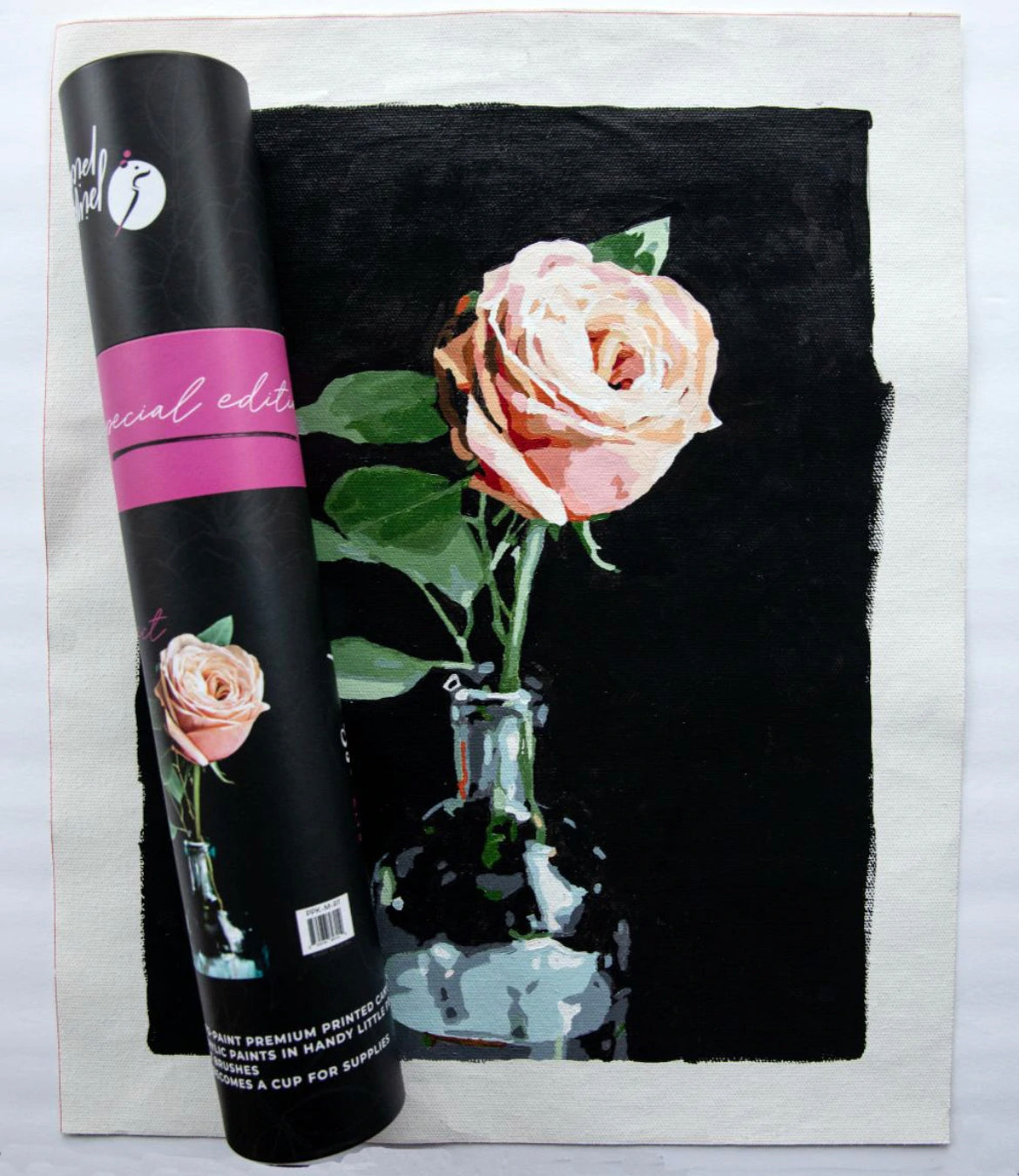 This original image is turned into a unique paint by numbers kit. Each kit includes a great quality template printed canvas, a 4 brush set, handy little pots of acrylic paint, and a map just in case you need to find a number you missed. The Special Edition Kits feature dramatic new black backgrounds that are sure to stun.