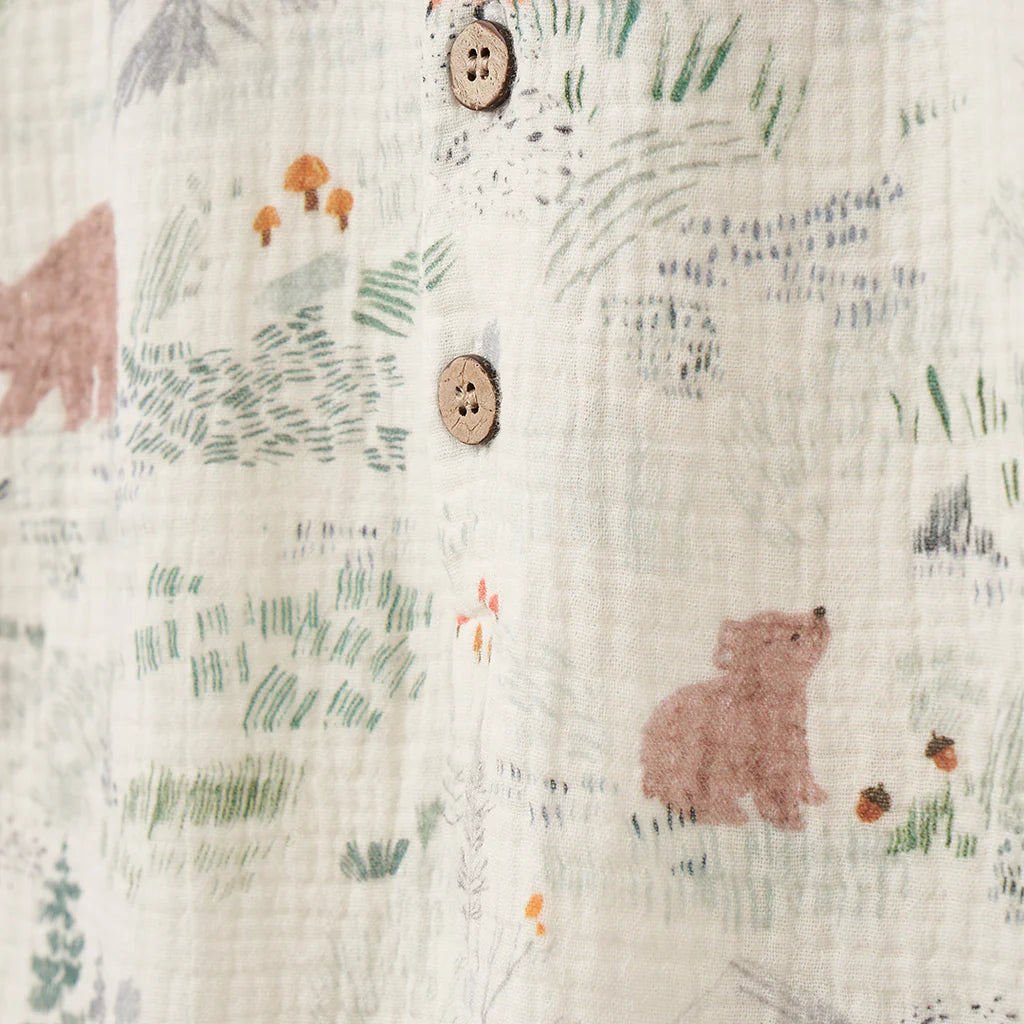 BEAR PRINT ORGANIC MUSLIN BUTTON DOWN SHORTALL