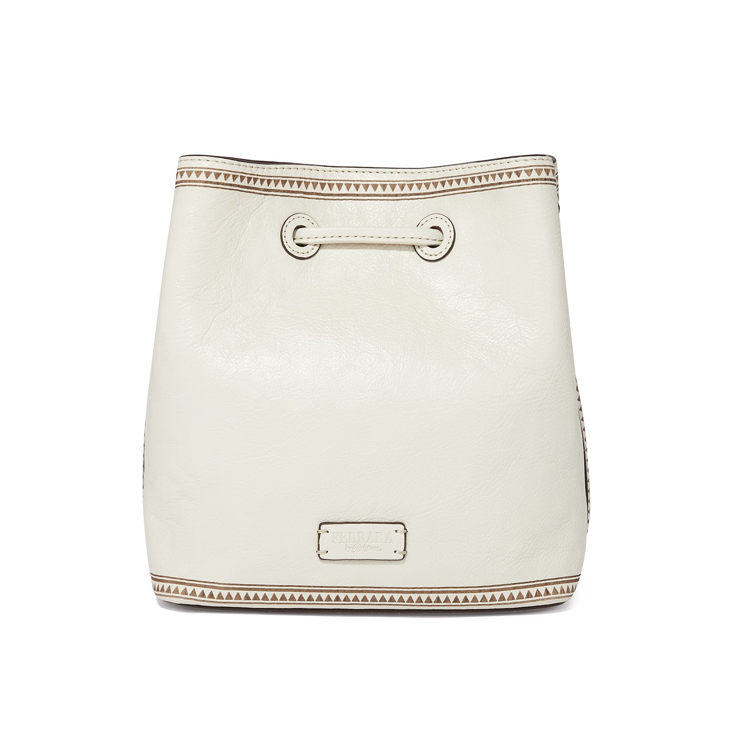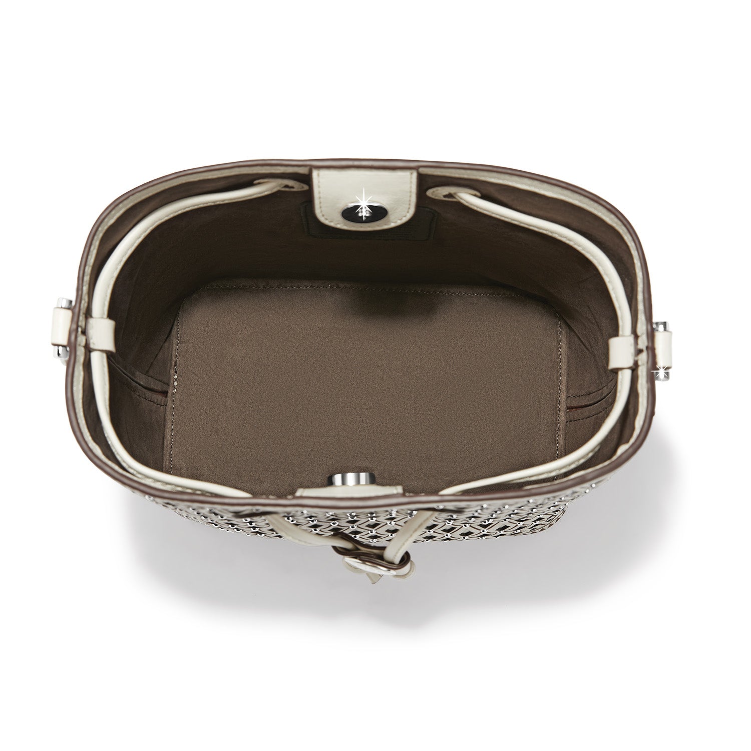 Thoughtfully designed with handcrafted details, this small bucket silhouette features leather sourced from the world’s finest tanneries and has a simple open silhouette with an interior snap for ease and function. A beautiful hand-laced herringbone design decorates the bottom front panel of the bag along with iconic Harmony knot hardware. The woven crossbody strap is another feature that showcases workmanship and artistry.