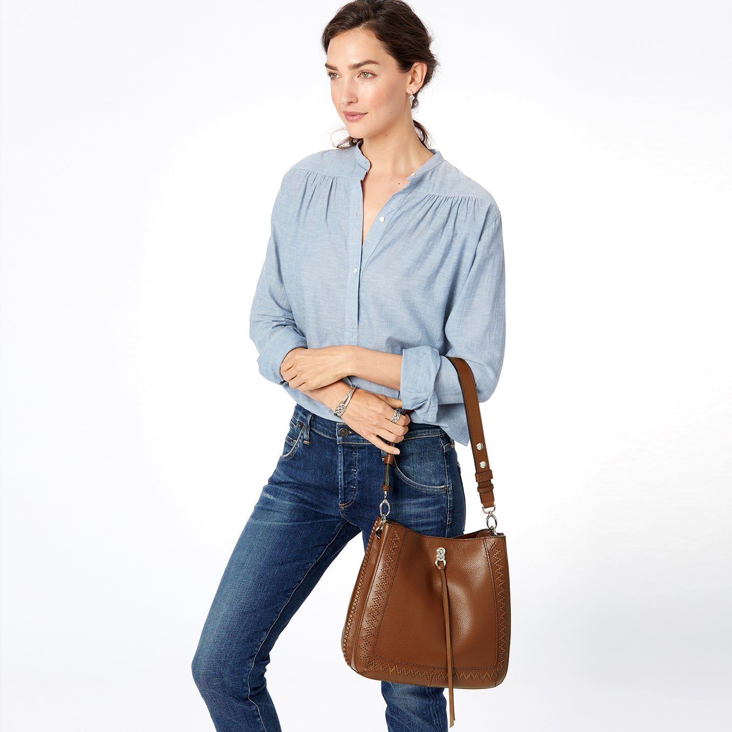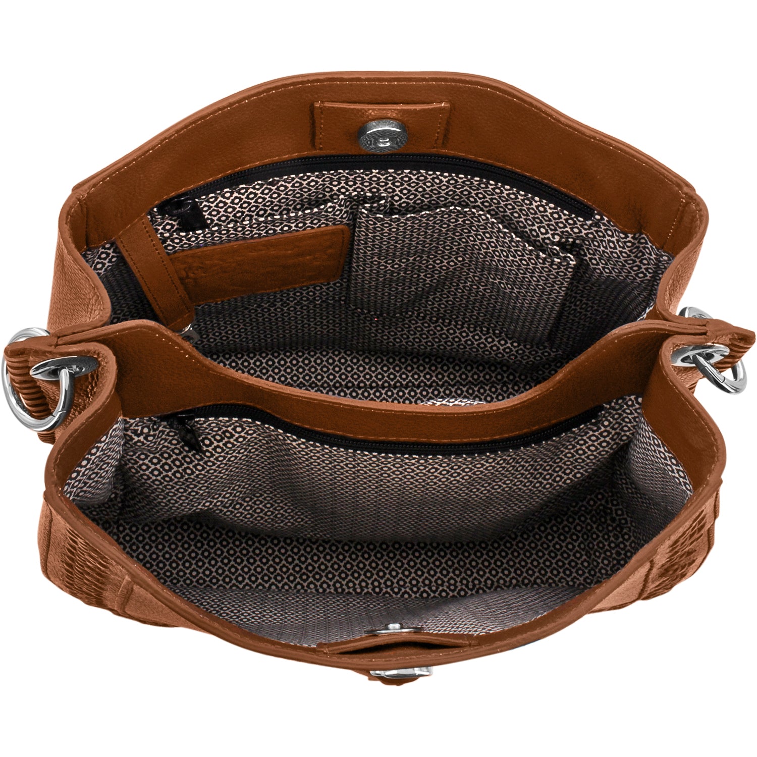 Embellished minimally with understated Celtic-knot inspired hardware and zigzag hand-laced details. We love this sleek hobo bag's two main compartments -- simple and so organized.