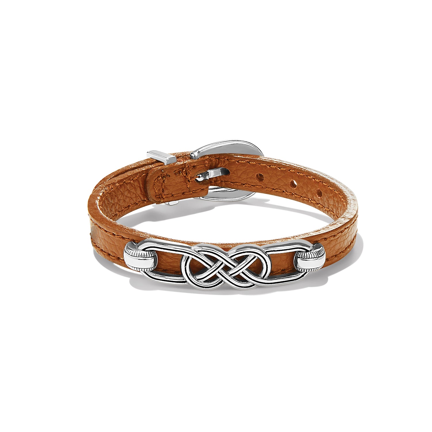Braided knot motifs with no beginning or ending symbolize never-ending love and friendship on this fine leather bracelet that is perfect for stacking with silver bracelets.