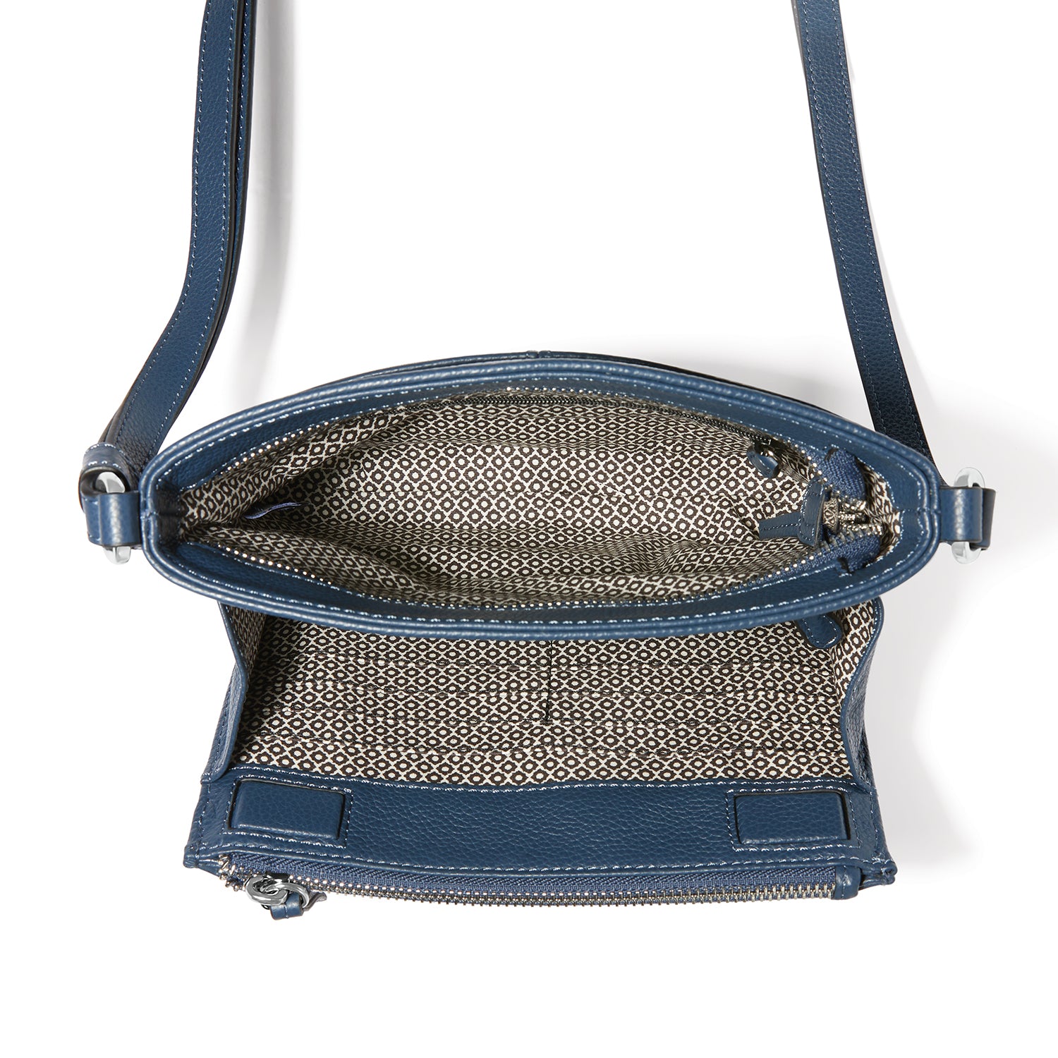 With its beautiful artisan hand-laced detailing and Celtic knot hardware, you’d never guess this fine leather bag is a truly practical organizer. It has a many-pocketed wallet built right in and a large zippered pocket for security.