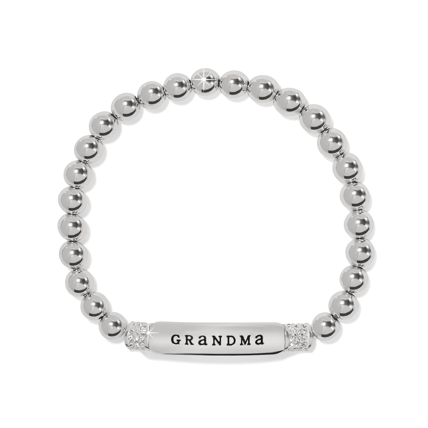 Delicately styled with a message of giving – the “grandma” bracelet can be worn solo or stacked with other Meridian Petite stretch message bracelets.