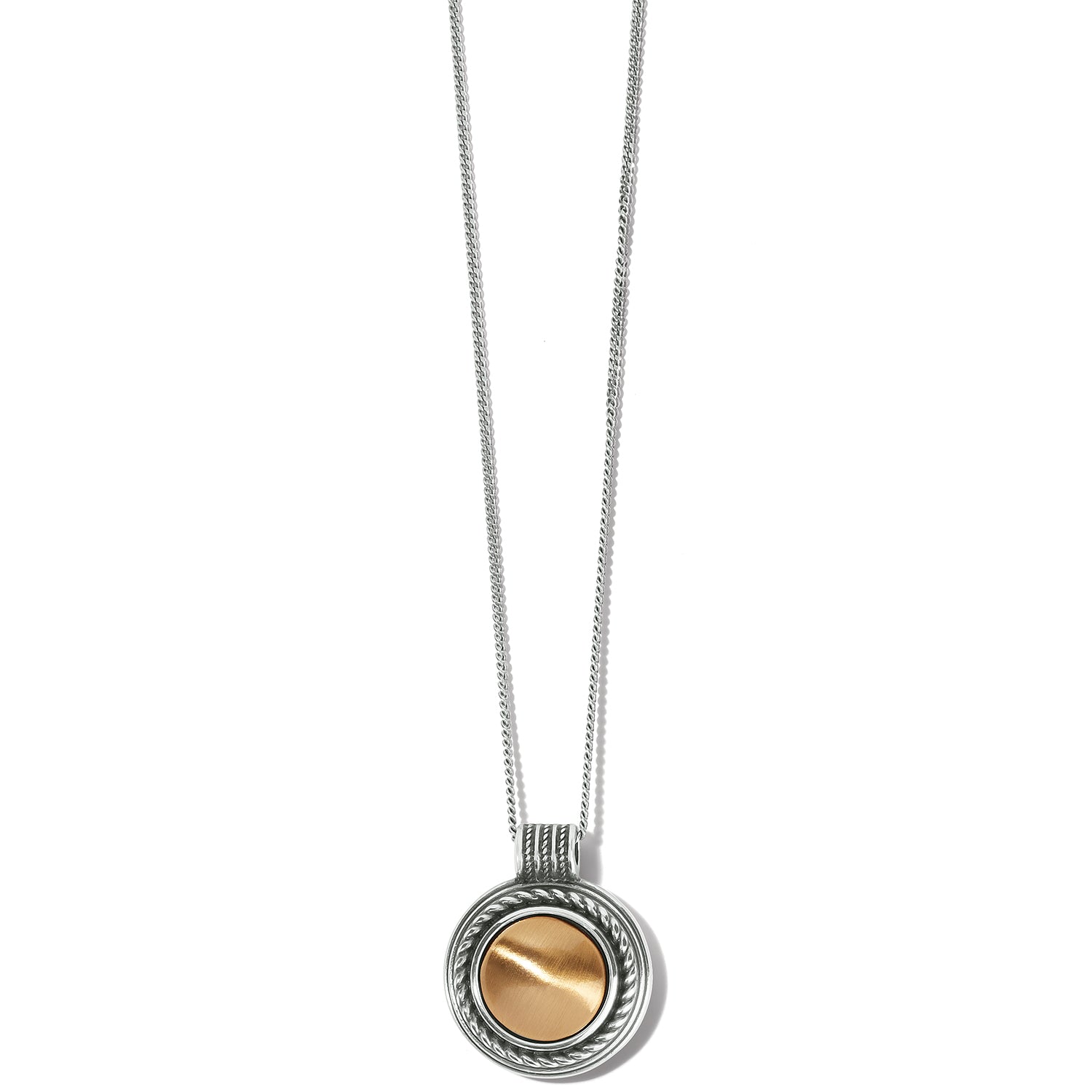 A celebration of the rich crafting of metalwork – this golden and silver pendant necklace will instantly elevate whatever you wear.