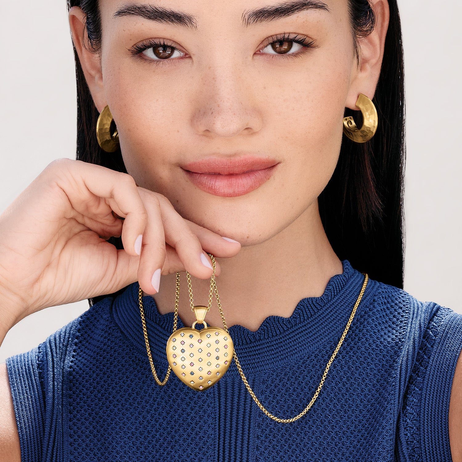 A heart locket to keep close to your own or give as a gift to someone special is beautifully crafted in brushed gold with hand-set colorful crystal accents. You can upload and resize your photo using our online tool and we’ll add it to your locket.