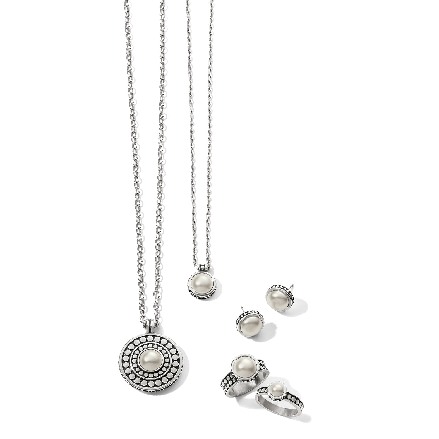 Fine crystal pearls and Balinese pebble and dot textures combine in these timeless classic earrings..