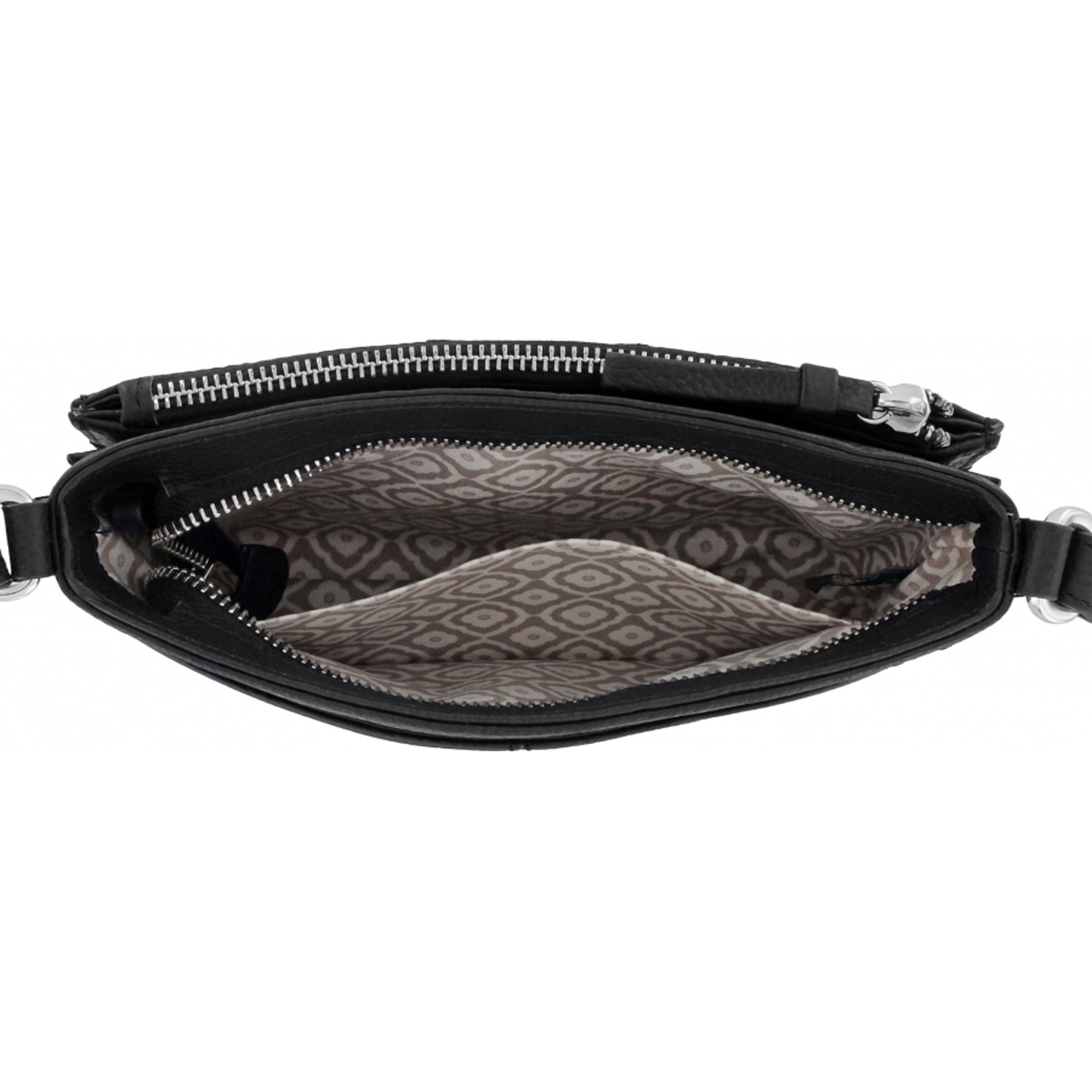 Everything in its place is this organizer's motto, with a many-pocketed built-in wallet. A smooth ziptop close, along with a large zippered pocket on front, add security, while chic Pretty Tough motif adds style.