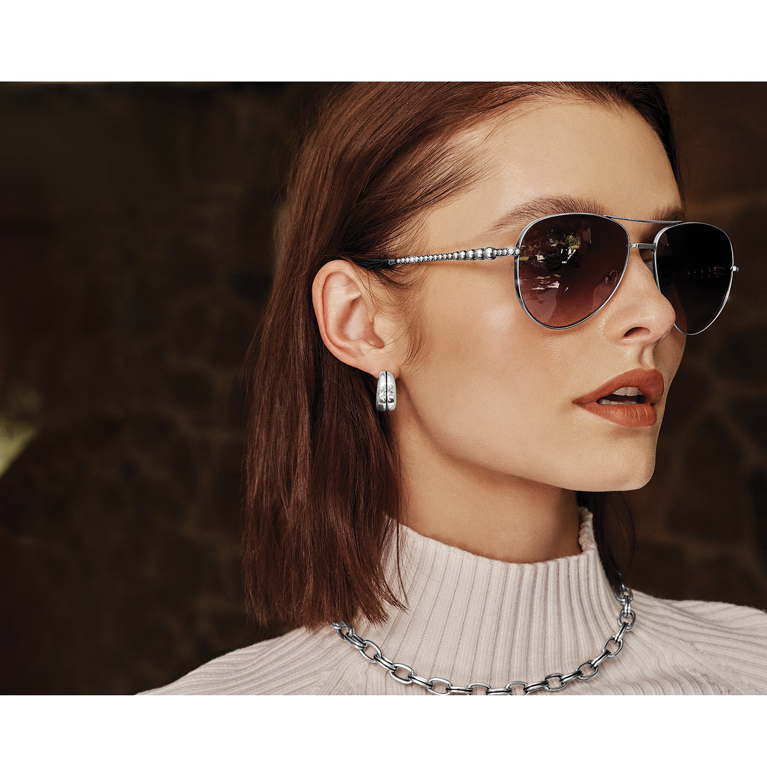 This aviator frame has modern touches like a blocky nose piece, wide rimmed frames, and a flatter shape – a great casual style for the woman who loves to wear aviators!
