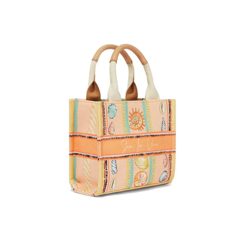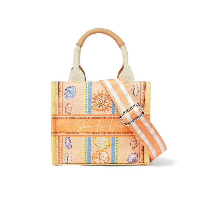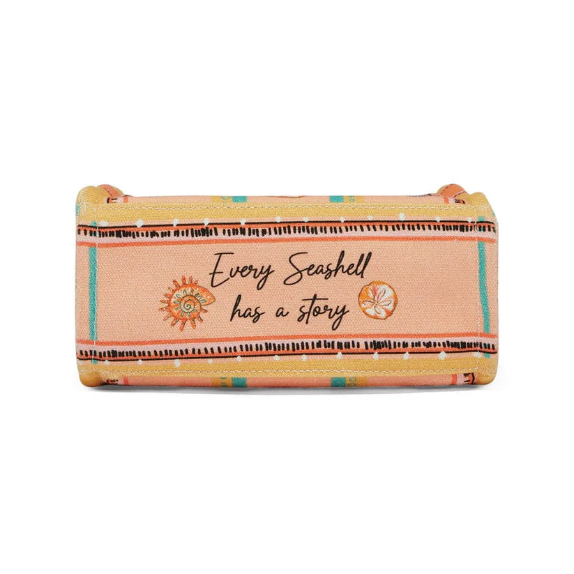 Our designer Lisa Spayd-Sendre has cast a wide net and pulled in an amazing treasure trove of images from her imagination – spanning seascapes to beachscapes and delicate shells for her artwork. We printed this “shell story” art she created onto all sides of this soft, durable cotton canvas tote – even the lining is her custom design. On the bottom, you’ll find an inspiring message, “Every seashell has a story.” When you carry it by the sturdy vegetable tanned leather trimmed handles, the story becomes your own.