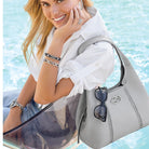 This roomy bag in rich pebbled leather with artisan handwoven herringbone lacing features a center zip pocket accommodates everything for your everyday activities. The double strap makes it easy to access all your often-used items.