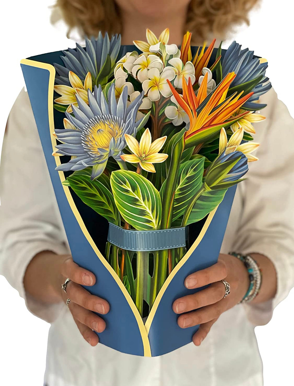 - Includes: bouquet, matching bouquet note card, paper vase and vibrant mailing envelope
