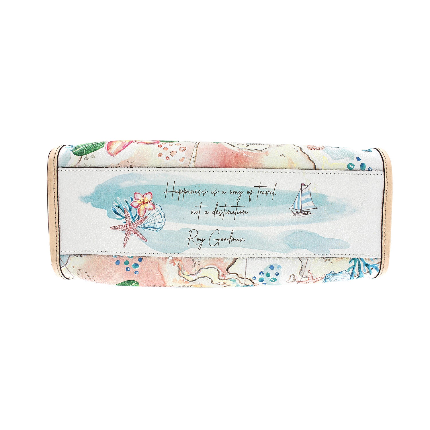 Take paradise with you when you carry this Voyage Tote inspired by vintage maps depicting tropical adventures! You'll love its ziptop closure (important when exploring crowded ports of call), its adjustable strap and top handles, and its message on the bottom that reads, Happiness is a way of travel, not a destination.